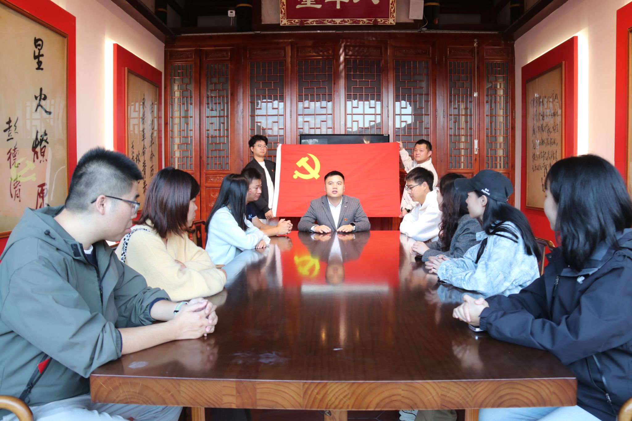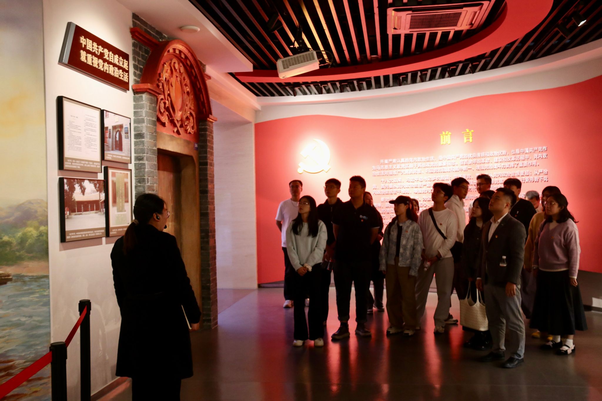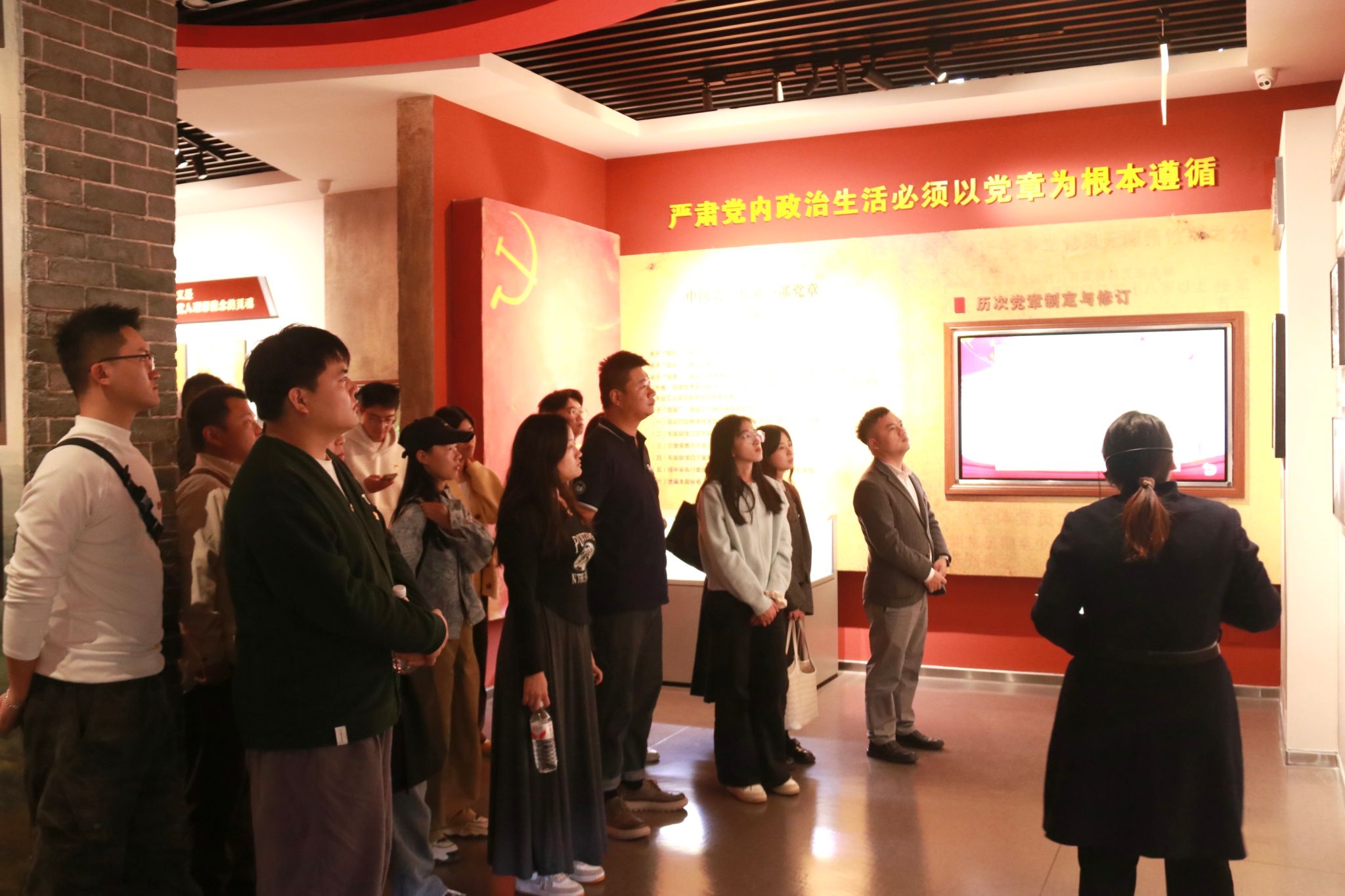 随后,在讲解员的介绍下,大家系统回顾了党内政治生活的发展历程与重要规范,深刻体悟到严肃认真的党内政治生活是我们党锤炼党性、净化队伍、增强凝聚力的重要法宝。