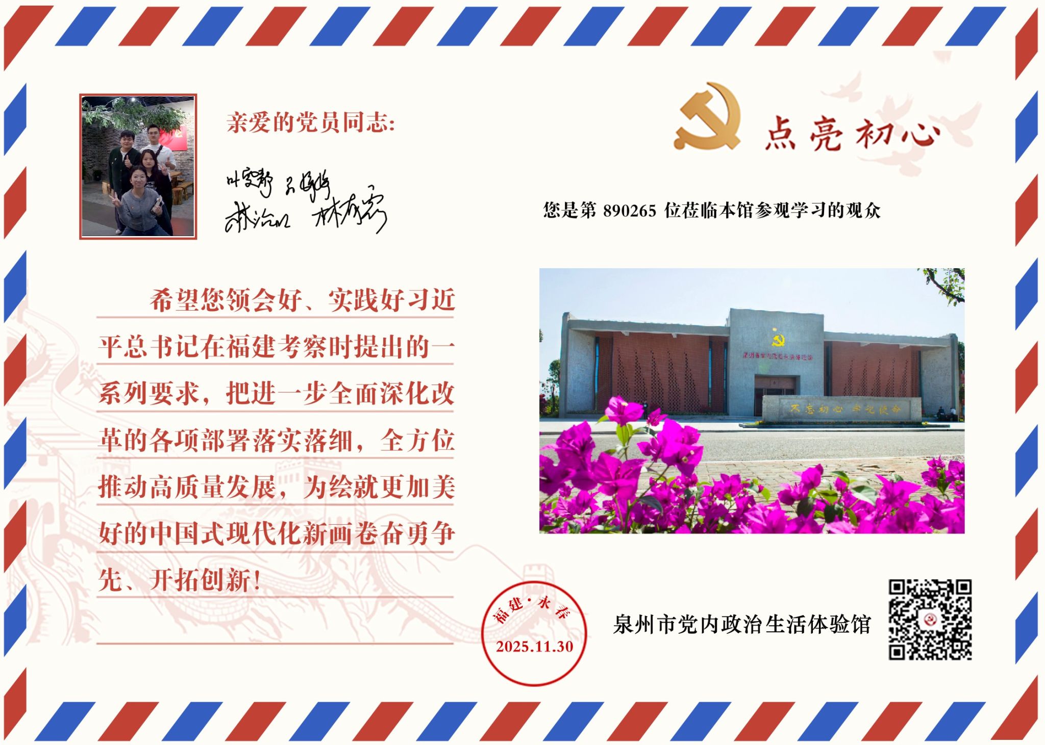 通过“明信片打卡机”参与了线上互动,留下对党的深情祝福,将庄严承诺转化为指尖的温度与行动的表达。