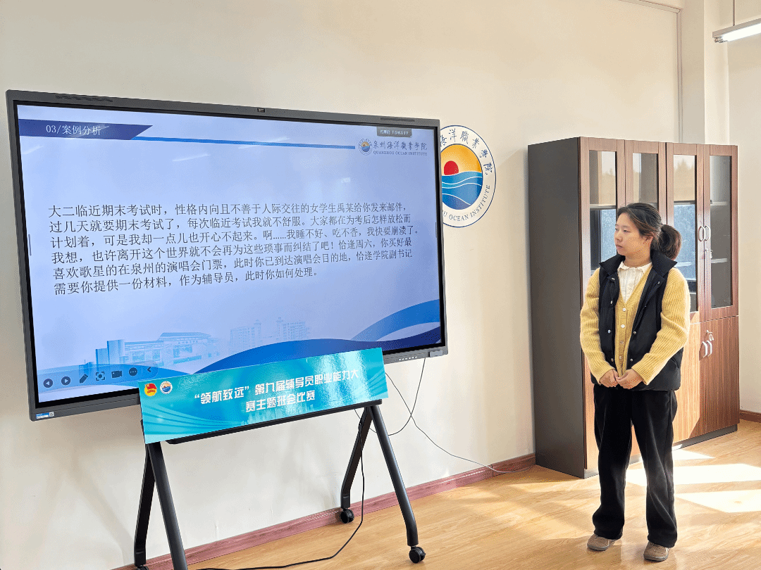 为深入落实泉海院综〔2025〕185 号文件要求,扎实推进首届泉州市民办高职院校辅导员职业能力大赛校区选拔工作,持续深化 “领航致远” 第九届辅导员职业能力大赛育人成效,11 月 26 日上午,国防教育学院在图书馆东侧 605 会议室隆重举办辅导员职业能力大赛初赛。