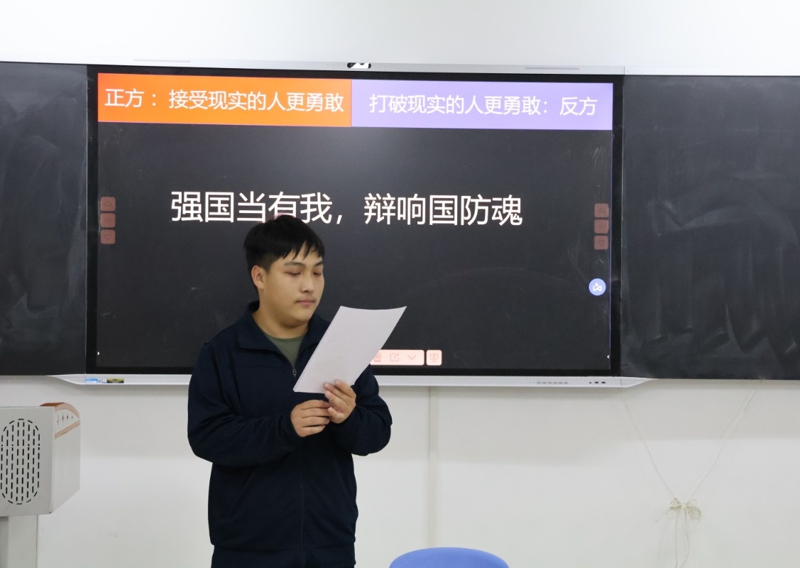 近日,国防教育学院辩论赛初赛在热烈激昂的思辨氛围中圆满落下帷幕。来自各大队的优秀辩手齐聚赛场,以缜密逻辑为刃、以铿锵言辞为盾,在智慧交锋与思想碰撞的火花中,充分彰显出国防学子卓越的思辨素养与昂扬向上的精神风貌。这场融汇理性光芒与青春激情的辩论盛宴,不仅是一场语言技巧的精彩较量,更是一次淬炼思想锋芒、提升综合能力的深刻蜕变。