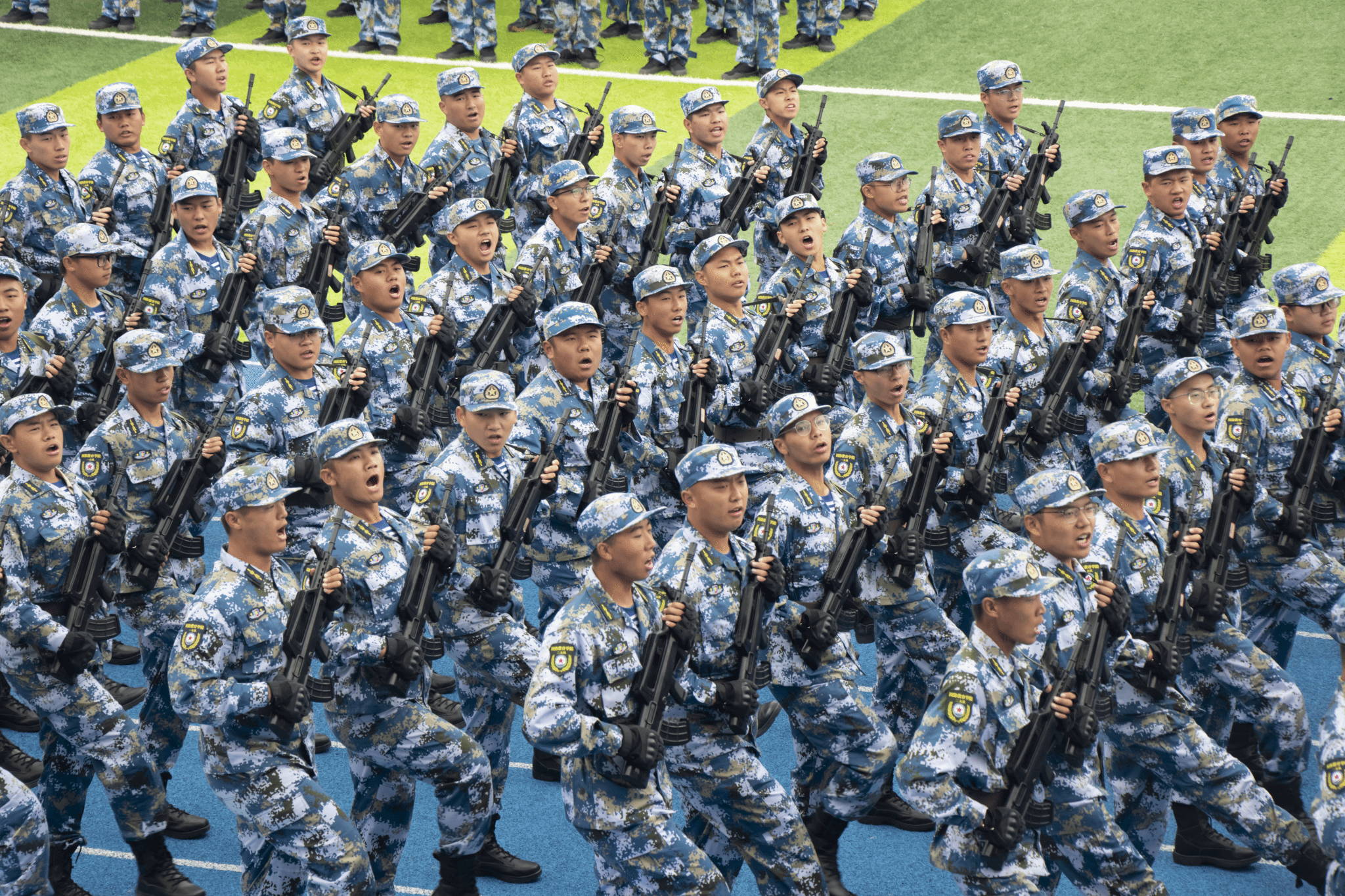 会操当天,国防教育学院方阵身着迷彩服,以抱枪队列率先登场。成员步伐铿锵、动作精准,尽显过硬军事素养,为其他学院树立标杆。随后各二级学院队伍依次通过主席台,展现泉海新生风采。