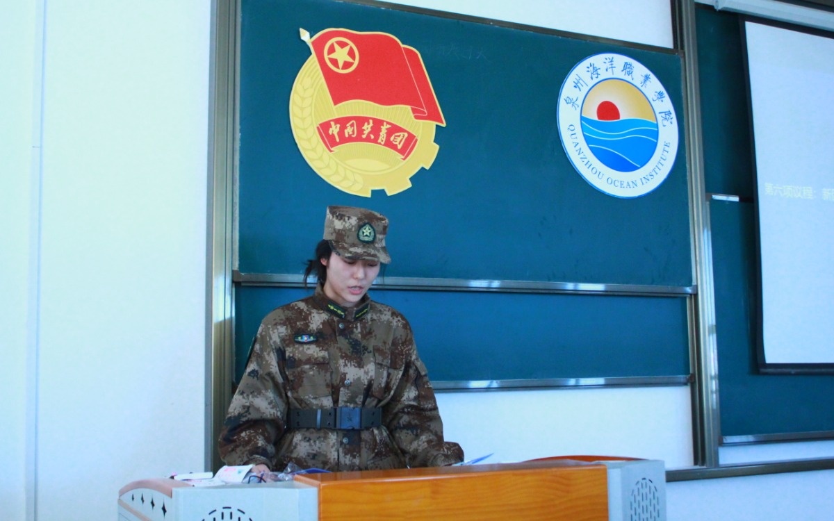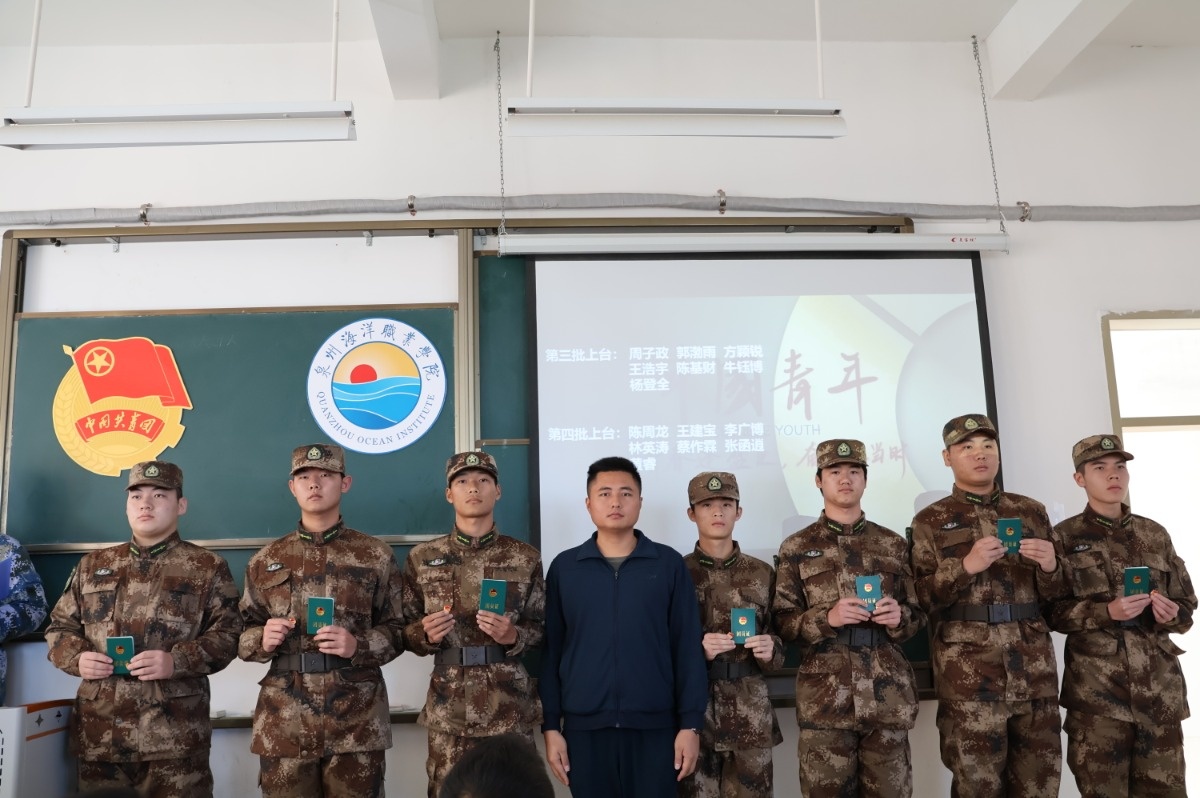 新团员代表朱迦南同学登台发言,真挚抒发了加入共青团组织的自豪与激动之情,郑重承诺将以团员标准严格要求自我,勤奋学习知识、锤炼过硬本领,矢志为国防事业建设添砖加瓦、贡献力量。