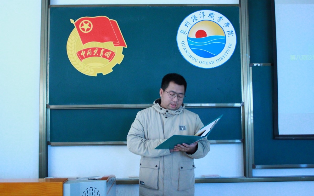 学院团委组织部负责人魏晨祥同学宣读了《中国共产主义青年团章程》中关于团员权利与义务的相关规定。这一举措帮助新团员进一步明晰自身肩负的责任使命,强化共青团组织观念,自觉践行团员义务,以实际行动恪守入团初心。