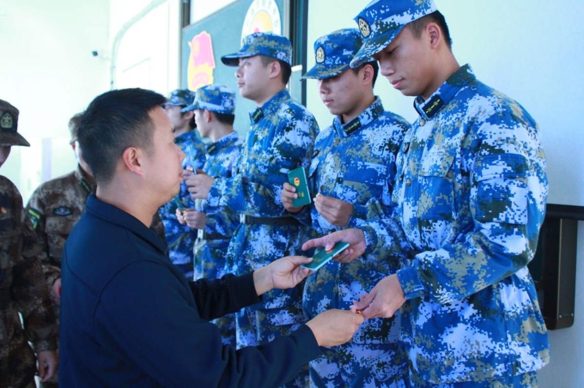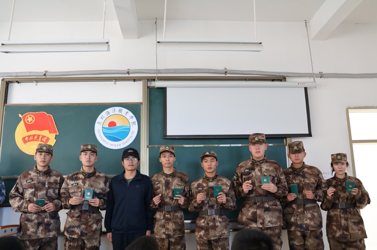 国防教育学院军事总教官蔡荣伟郑重宣读本次新团员入团决定文件。文件逐一明确了新团员名单,这标志着一批青年学子正式加入共青团组织,自此肩负起共青团员的光荣责任与时代使命。