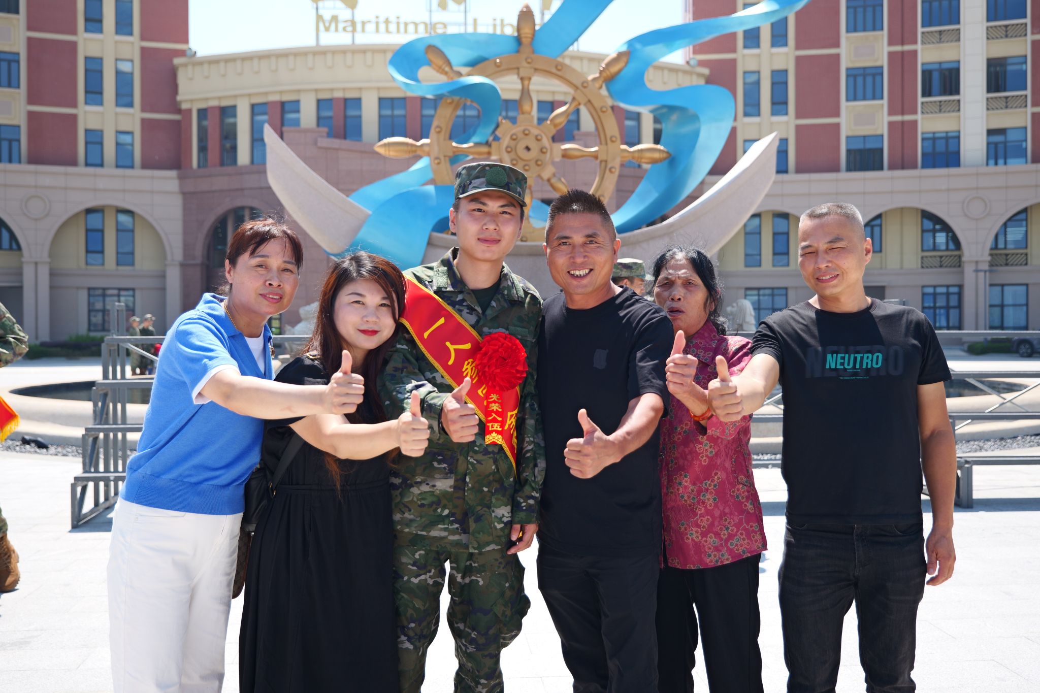 在荣誉授予环节,航海交通学院院长董远志、海洋工程学院执行院长黄加亮、信息工程学院院长贾超、健康休闲学院院长罗刚依次为47名准军人颁发入伍通知书。