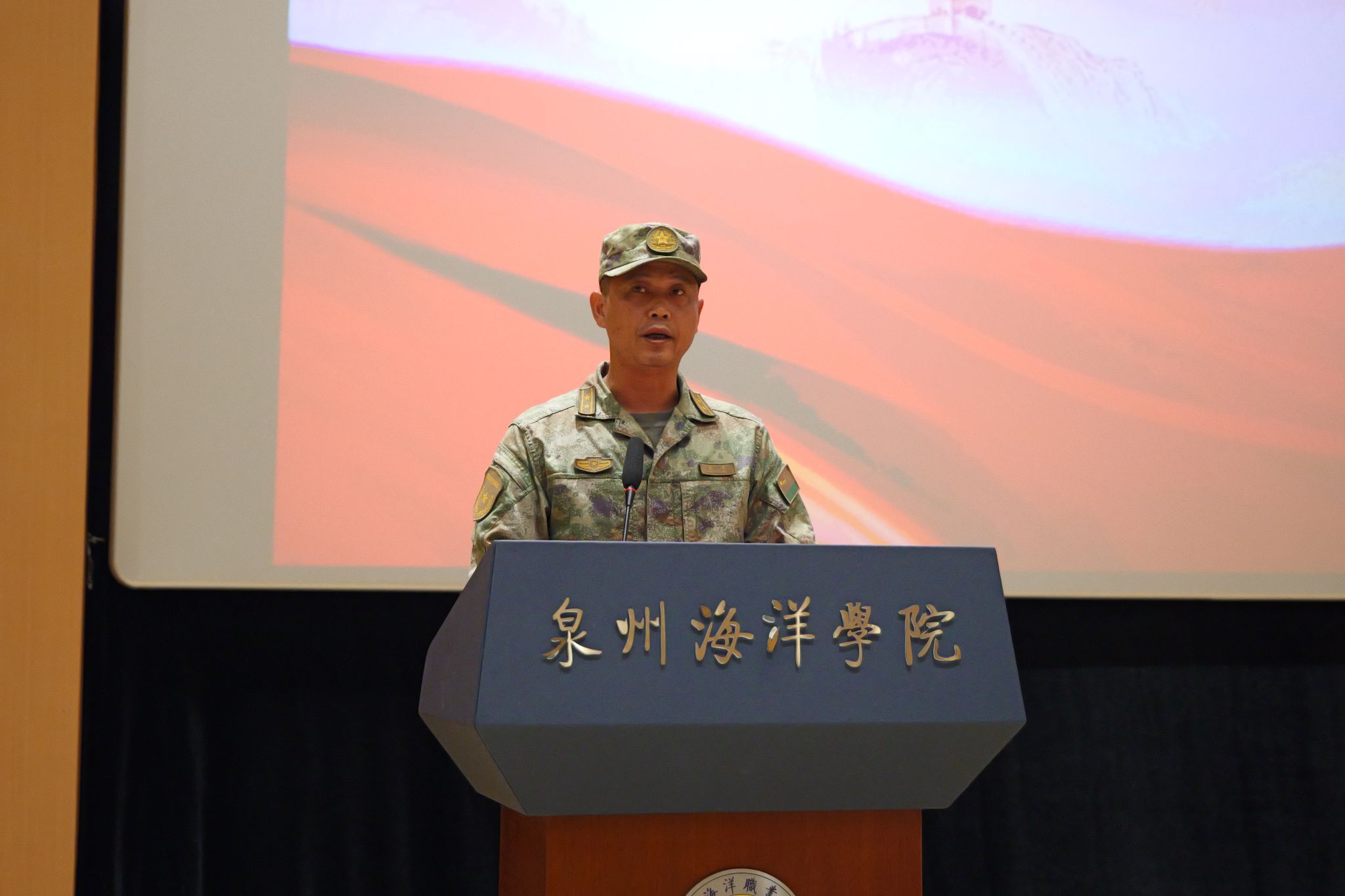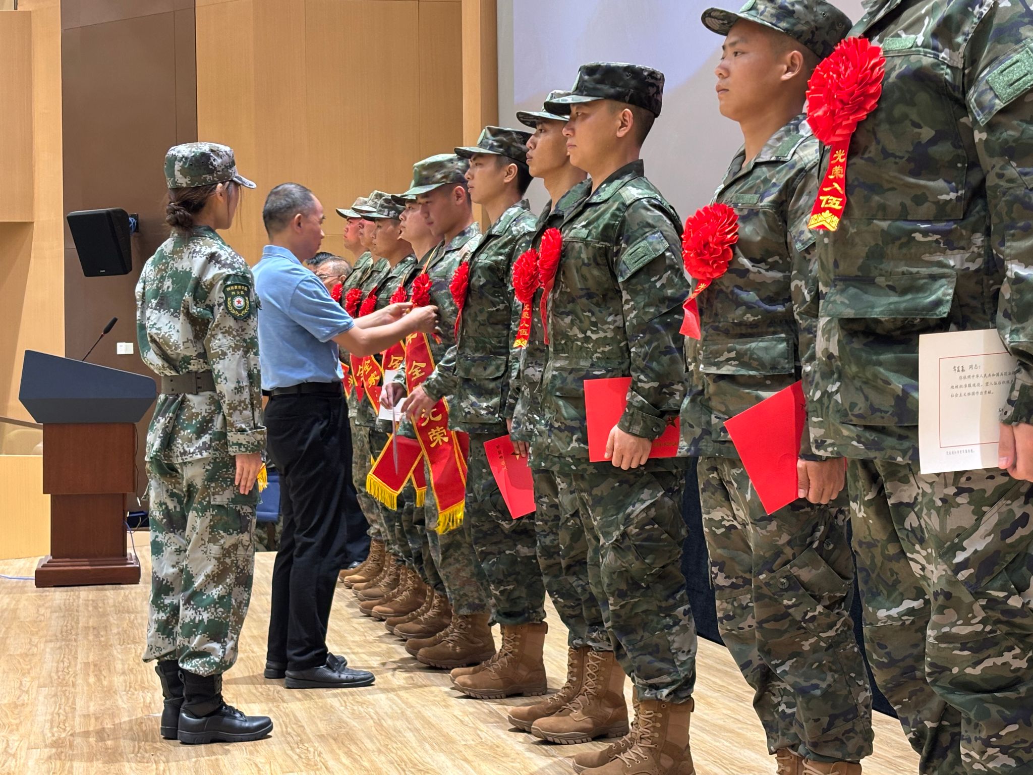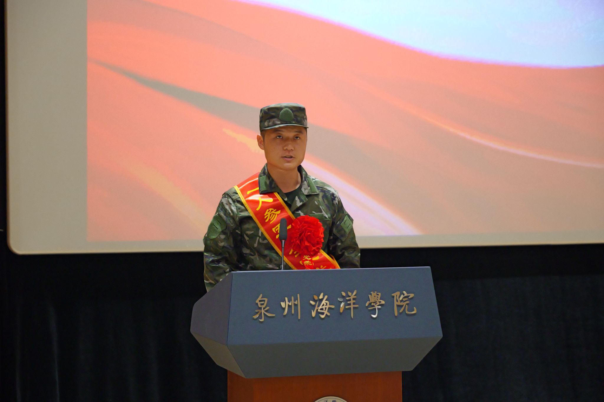 “学院的准军事化管理,从日常作息到纪律意识都严格要求,让我提前适应了军人的生活节奏,也更加坚定了参军报国的理想!”国防教育学院常晟嘉作为入伍学生代表发言,他感谢学院通过队列训练、国防理论课等为军旅生涯打下坚实基础,并感恩家人的支持与鼓励。