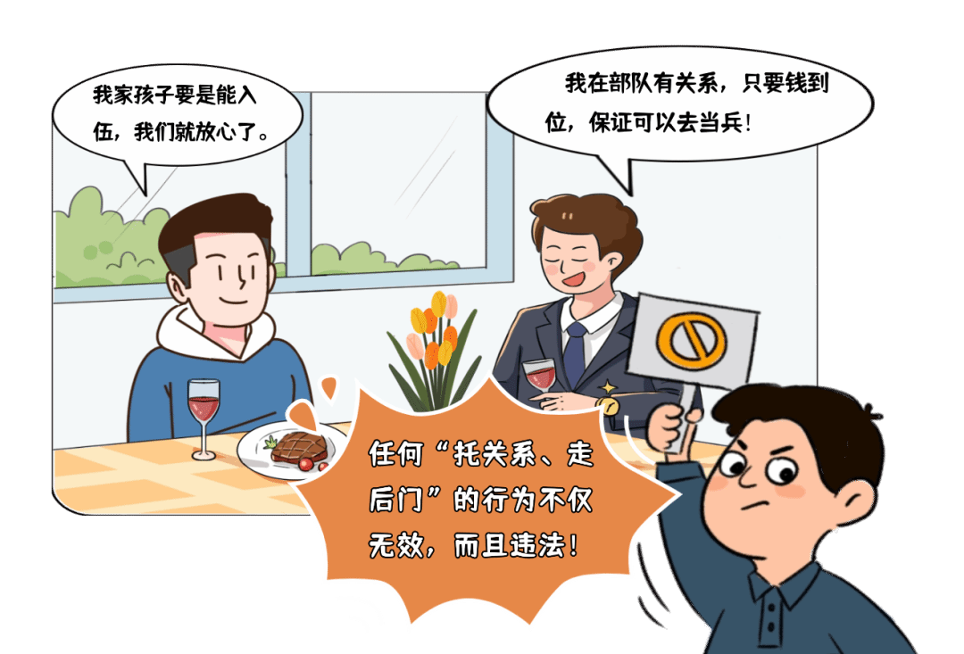 有的应征青年家长受某些社会不良风气的影响,“办事花钱、动辄找人”的惯性思维还没有完全改变,向征兵工作人员送钱、送礼或安排宴请、旅游、娱乐等,试图向部队输送不合格兵员,不仅危害部队战斗力建设,而且还是违法行为!