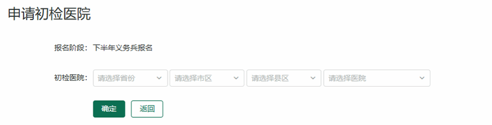 义务兵报名信息填写完毕并成功提交后,请在当地乡镇武装部或高校征兵工作站工作人员的指导下,点击我的进度里的“初检初核”按钮,选择初检医院进行初检,这是参军环节的第一步。