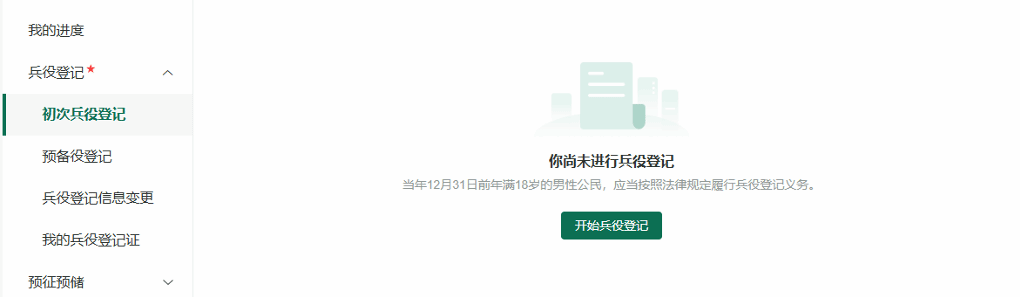 登录系统以后,点击右侧的“ 开始兵役登记 ”进行兵役登记啦!
