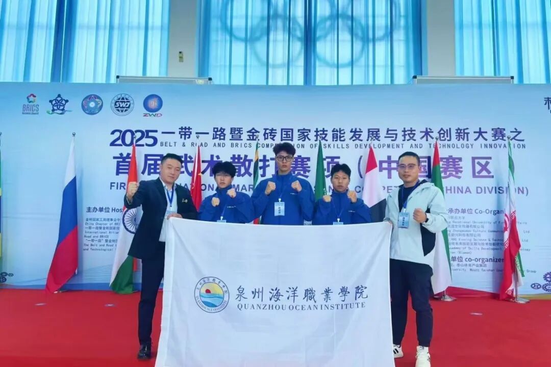 近日,2025年“一带一路”暨金砖国家技能发展与技术创新大赛首届武术散打赛项在山东威海落幕。我院轮机工程技术专业学子谢肖林在全国60余所院校400余名选手的角逐中脱颖而出,夺得男子60kg级国家级二等奖。