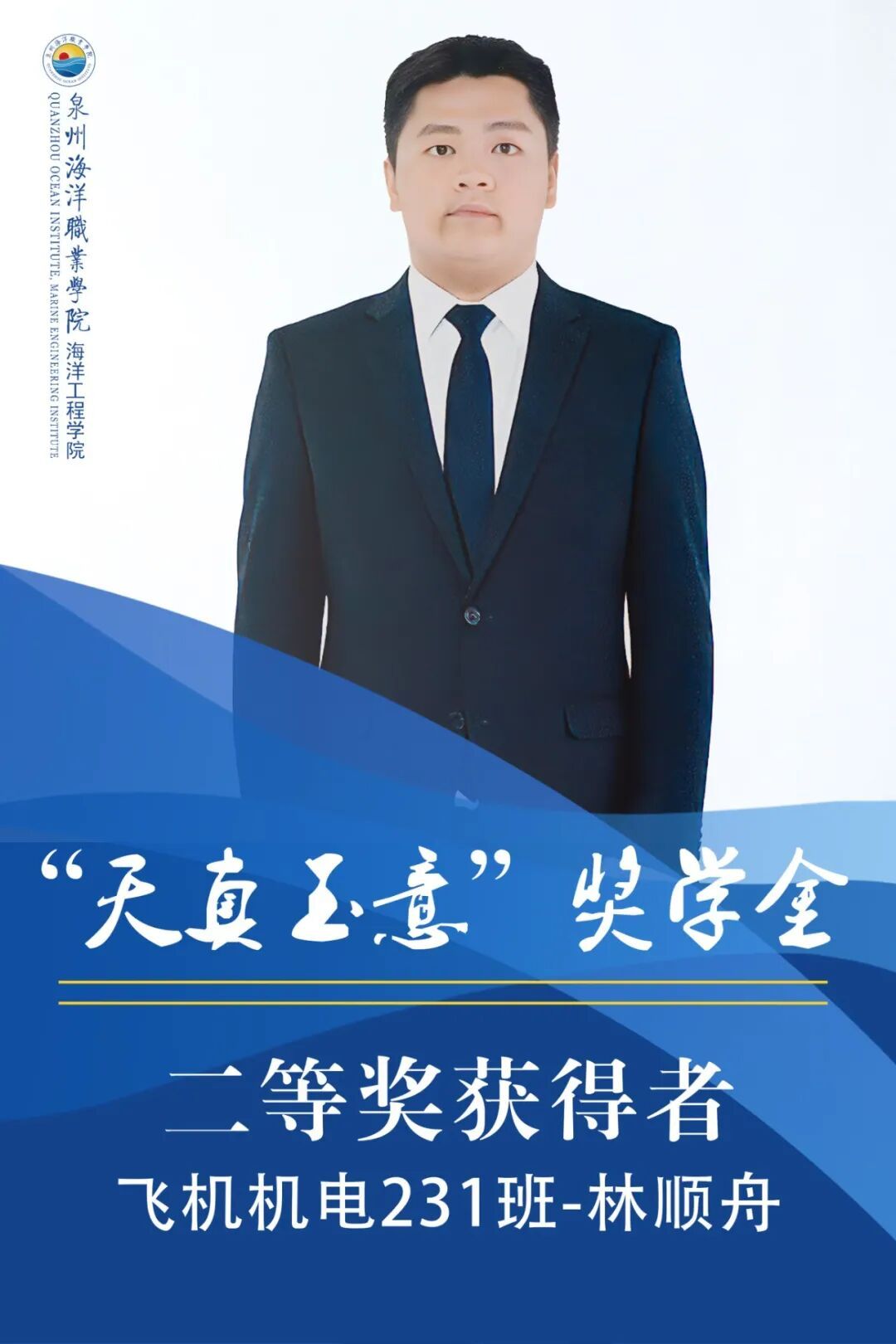 林顺舟,男,共青团员,就读于泉州海洋职业学院海洋工程学院2023级飞机机电设备维修专业。上学年综测、智育均排专业第一,获得2025年泉州海洋职业学院海洋工程学院技能比武大赛优秀奖,2025年泉州海洋职业学院三好学生,2025年泉州海洋职业学院海洋工程学院优秀共青团员,2025年泉州海洋职业学院海洋工程学院优秀学生干部。