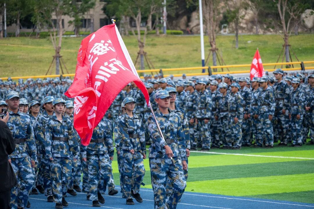 随着总教官一声令下,各学院新生方阵依次入场。海洋工程学院的学子们身着迷彩服,肩扛旗帜,迈着整齐划一的步伐走过主席台。每一步踏地都掷地有声,每一声呼号都直冲云霄。嘹亮的口号不仅展现了军训的丰硕成果,更彰显了海工学子投身海洋事业的坚定决心。