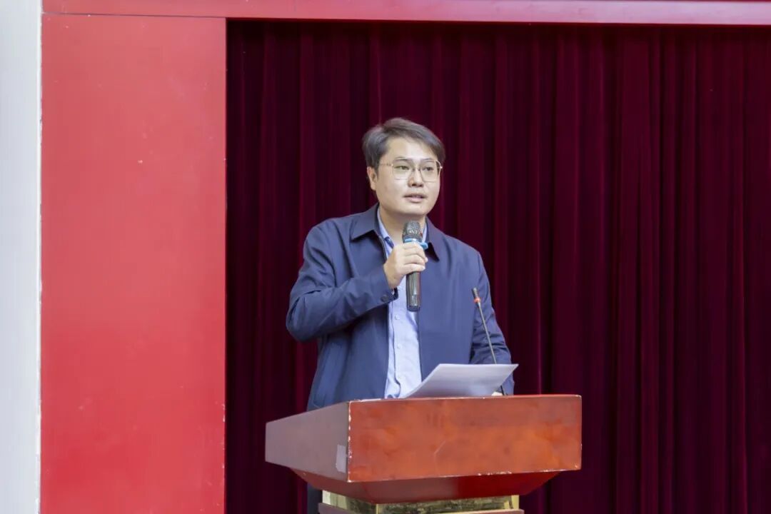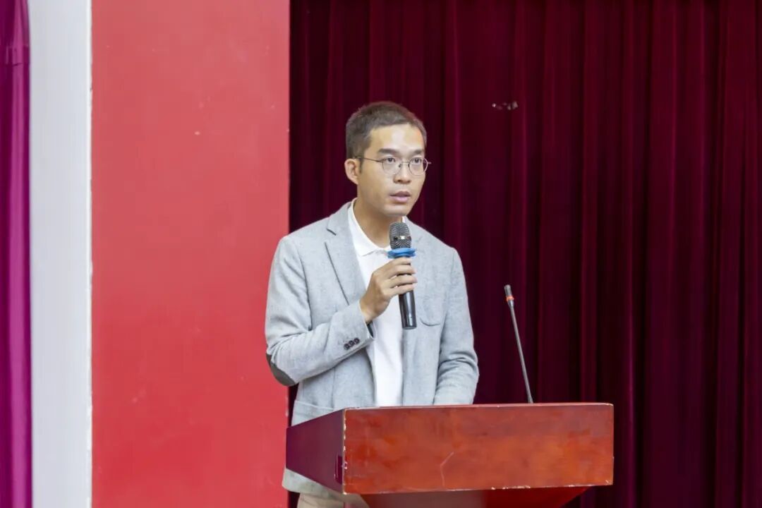 陈景锋作总结发言。首先,他向新任班导师送上祝贺与感谢。他强调,班导师制度是落实“三全育人、五育并举”的重要载体,更是连接师生成长的关键纽带。他明确班导师需当好专业学习的“领航员”、心理健康的“守护者”、价值观念的“引路人”,引导学生深植“海洋强国”理想。同时寄语2025级新生珍惜与班导师的交流机会,主动探索成长方向,并承诺学校与学院将为班导师工作提供全力支持,共同践行立德树人根本任务。