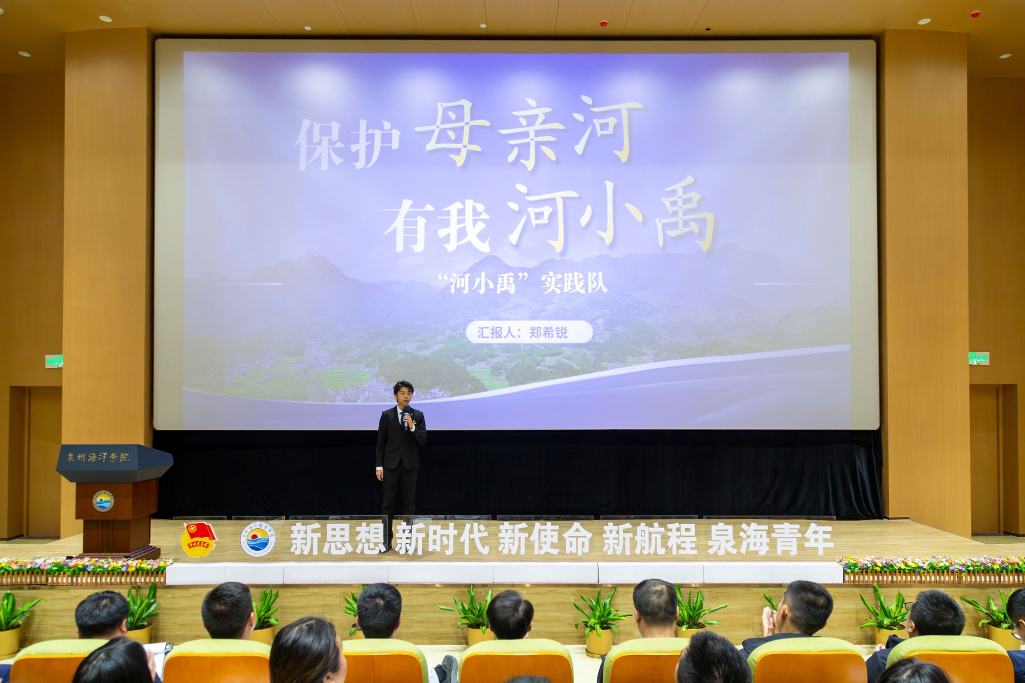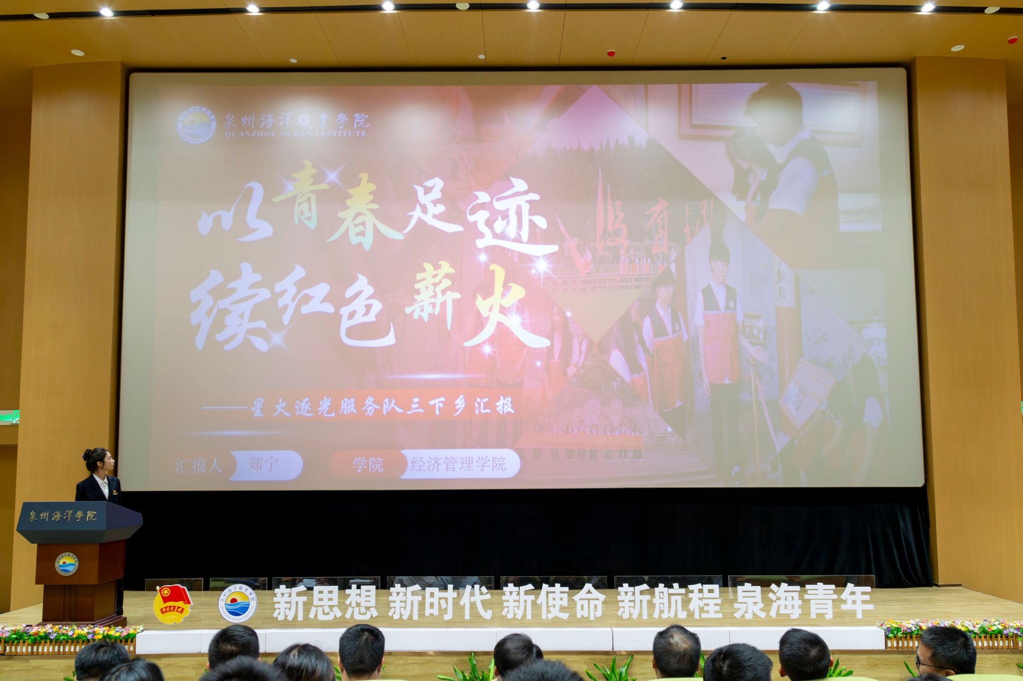 10支社会实践团队代表通过阐述实践经历、呈现具体成果,多个维度展示了“三下乡”活动的成效,展现出泉海学子在“大思政课”中朝着有理想、敢担当、能吃苦、肯奋斗的新时代好青年目标奋楫笃行、履践致远的良好形象。