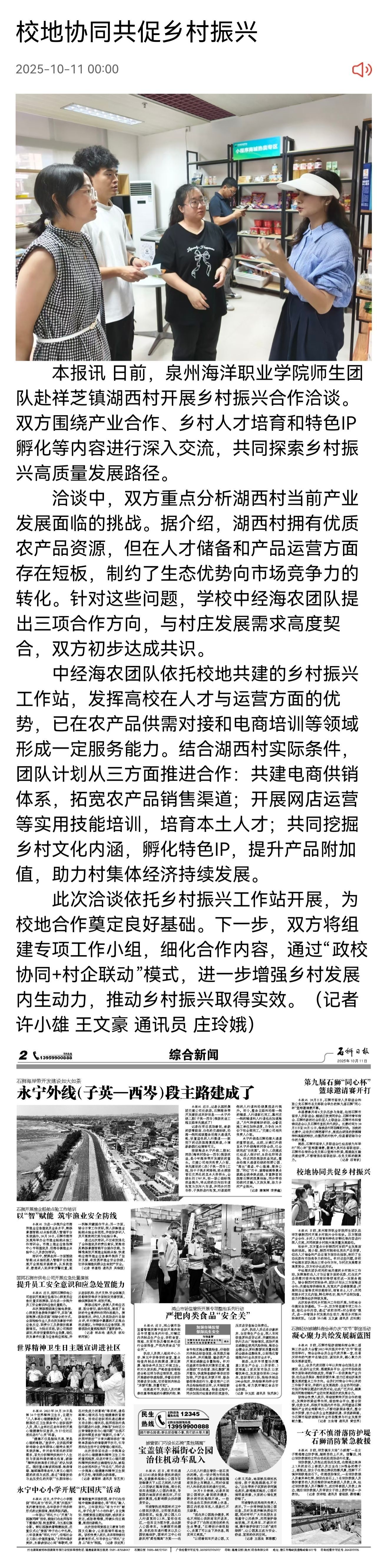 【石狮日报】校地协同共促乡村振兴