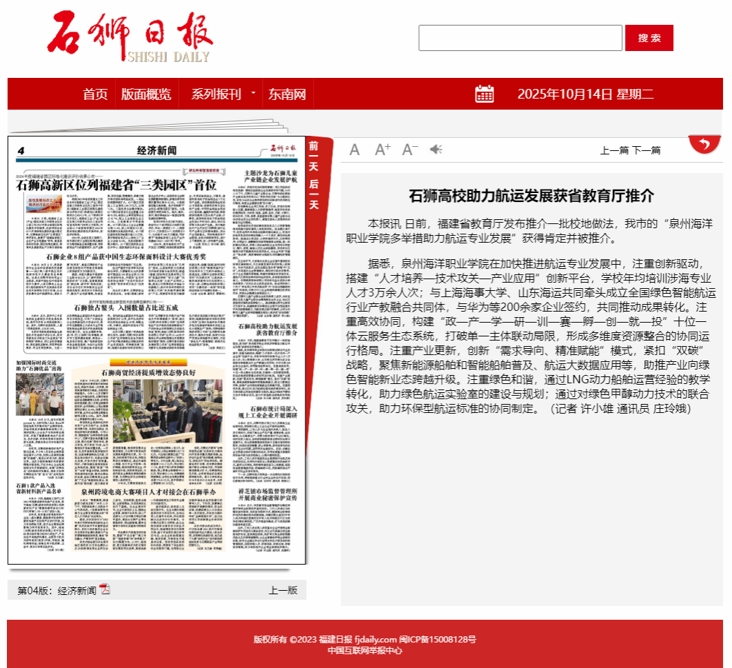 【石狮日报】石狮高校助力航运发展获省教育厅推介