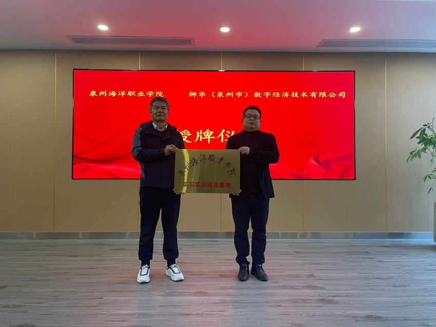 在华大数字经济研究院,张恒中院长一行与狮华(泉州市)数字经济技术有限公司代表共同为“实习实训就业基地”揭牌。双方围绕数字经济产业人才需求、课程共建、学生实习就业等核心议题展开深入交流,明确未来将在数字商务、跨境电商等领域深化合作,着力打造“人才共育、过程共管、成果共享”的产教融合新模式。