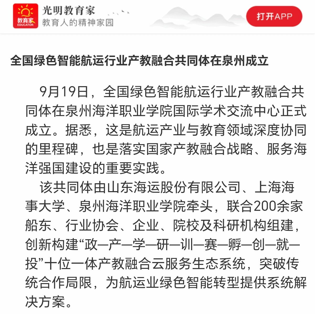 【光明教育家】全国绿色智能航运行业产教融合共同体在泉州成立