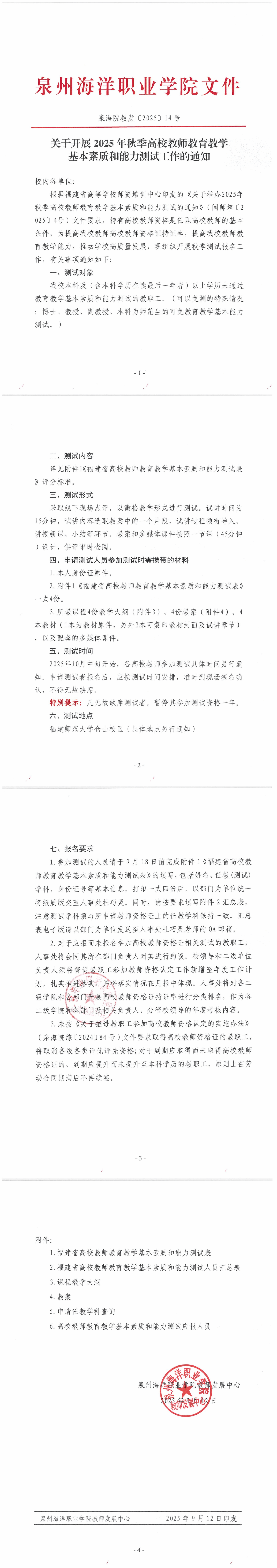 关于开展2025年秋季高校教师教育教学基本素质和能力测试工作的通知