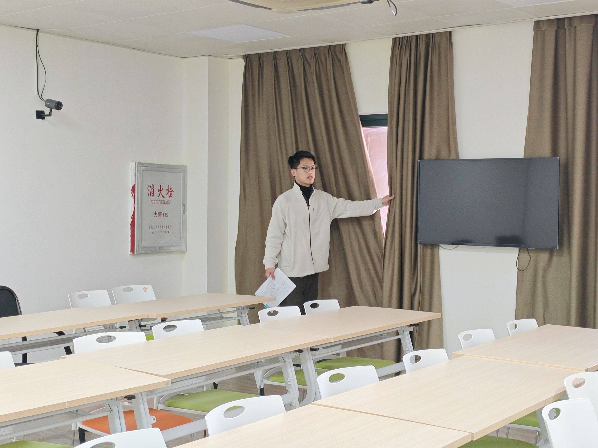 本次检查坚持“全覆盖、无死角、重实效”的原则,深入就业创业服务站、智慧教室等重点区域,聚焦安全关键环节,细致排查隐患。检查组重点核查了供电线路、开关插座的合规情况,查验了消防应急照明及疏散指示标志的完好状态,并随机抽查了相关场所安全管理制度的执行情况和日常巡查记录。检查过程中,检查组向各场所负责人强调了安全意识的重要性,督促大家密切关注期末及假期等重点时段,切实加强管控措施与安全教育,共同守护校园安全稳定。