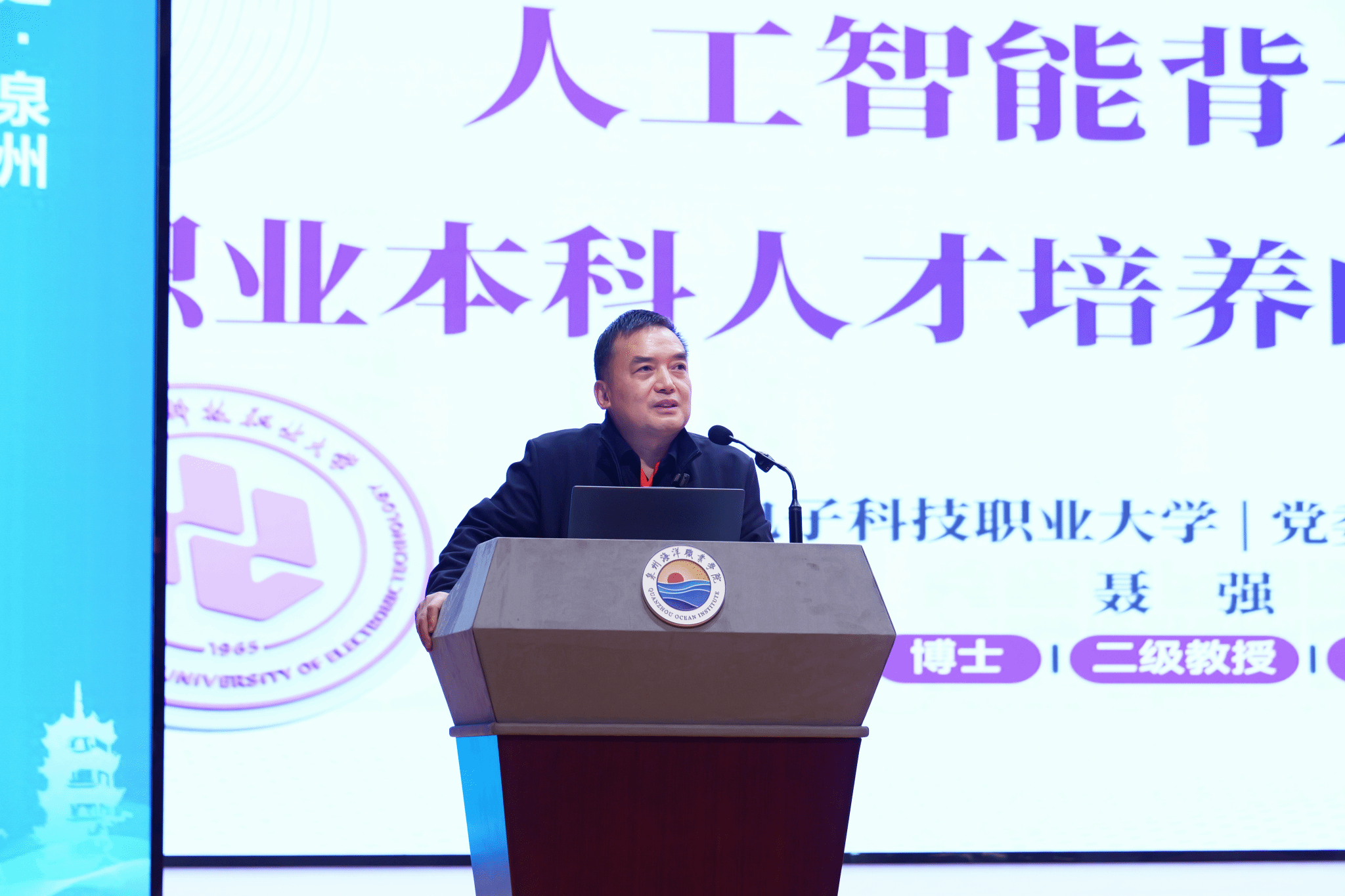 重庆电子科技职业技术大学校长聂强在主旨分享中,系统介绍了学校以人工智能赋能职业教育“五金”建设的创新实践。他分享了重电在“人岗链化、OBE+AI”打造金专业、“对接岗位、数智融合”建设金课程、“校企互聘、智慧工坊”培育金教师、“四共四融、智能驱动”迭代金教材以及“共建共享、虚实结合”构建金基地等方面的具体举措与显著成效,为职业院校如何借AI技术提升办学能力、培养适配产业需求的技术人才打开了新思路、提供了好范式。