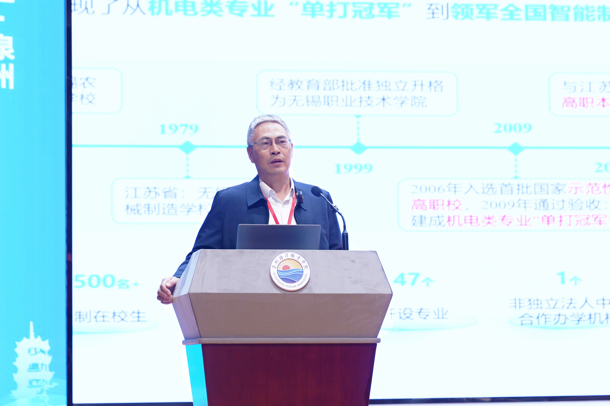 无锡职业技术大学校长周桂瑾围绕无锡职业技术大学“双主体・两融合・多通道”智能制造高技能人才培养模式展开分享,结合国家政策与产业需求,详解了深化德技融合、专创融合,优化智造专业(群)课程体系,打造产教融合集成大平台、持续完善 CCI人才培养机制等改革实践,为职业教育高质量发展提供了宝贵的“无锡样本”。