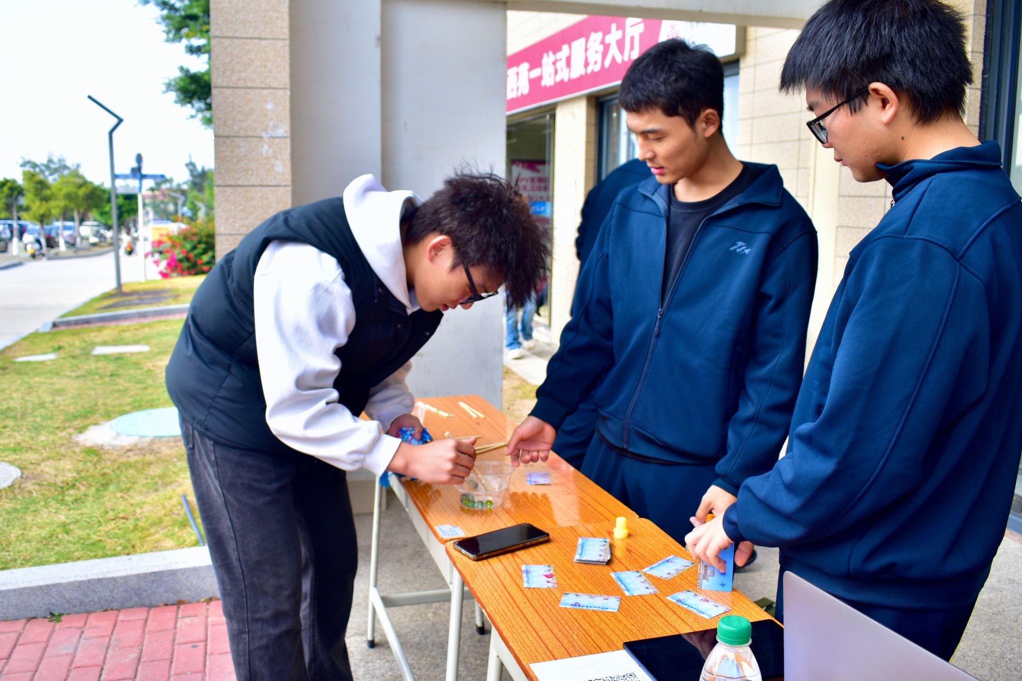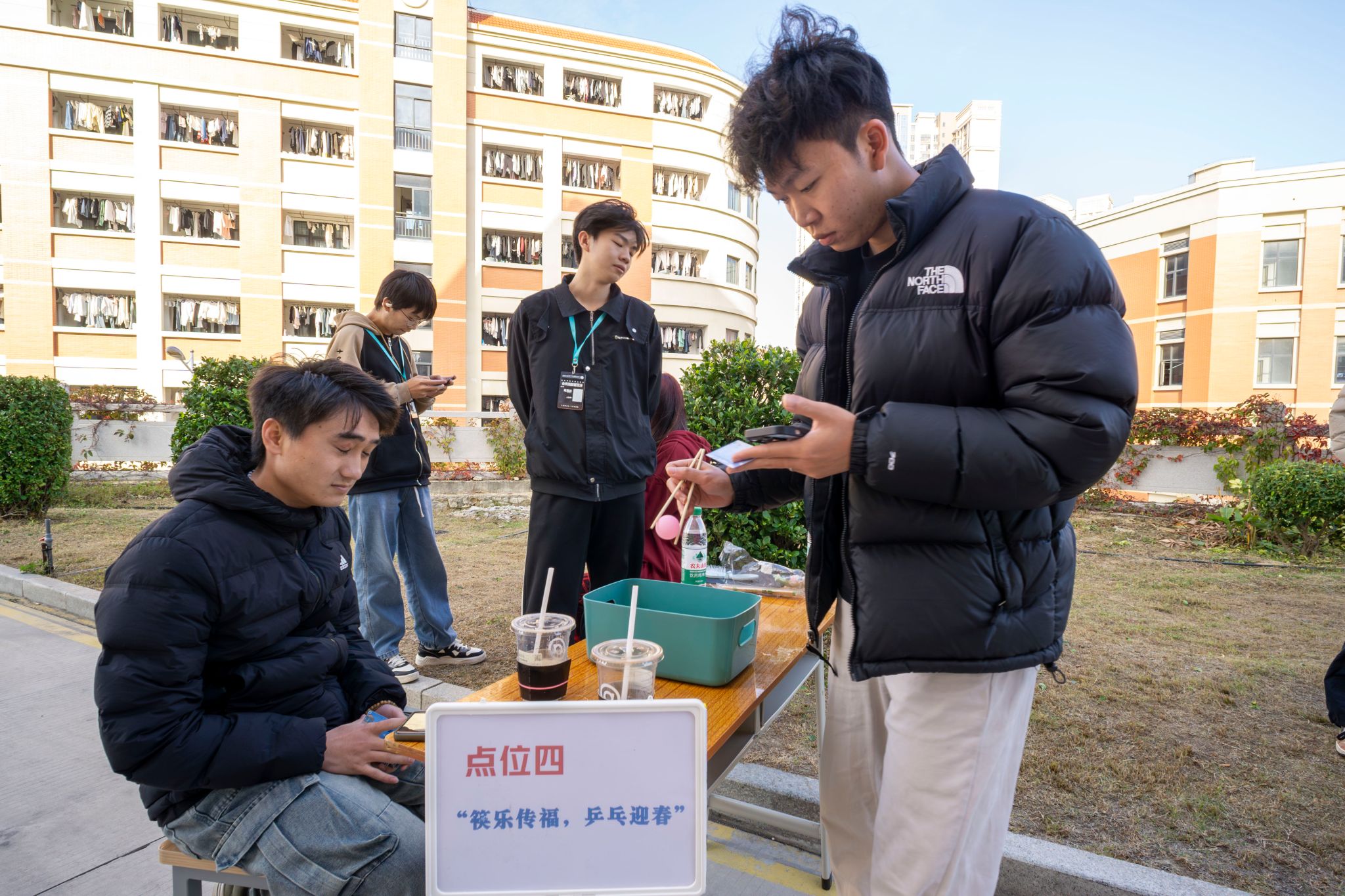 趣味互动区以轻松欢乐的氛围成为“解压圣地”,同学们斗智斗勇,笑声与欢呼声此起彼伏。拼春联比手速、听指令反套路、识图猜地点、传声摹词句……轻松的氛围让每个人都成为快乐的参与者。