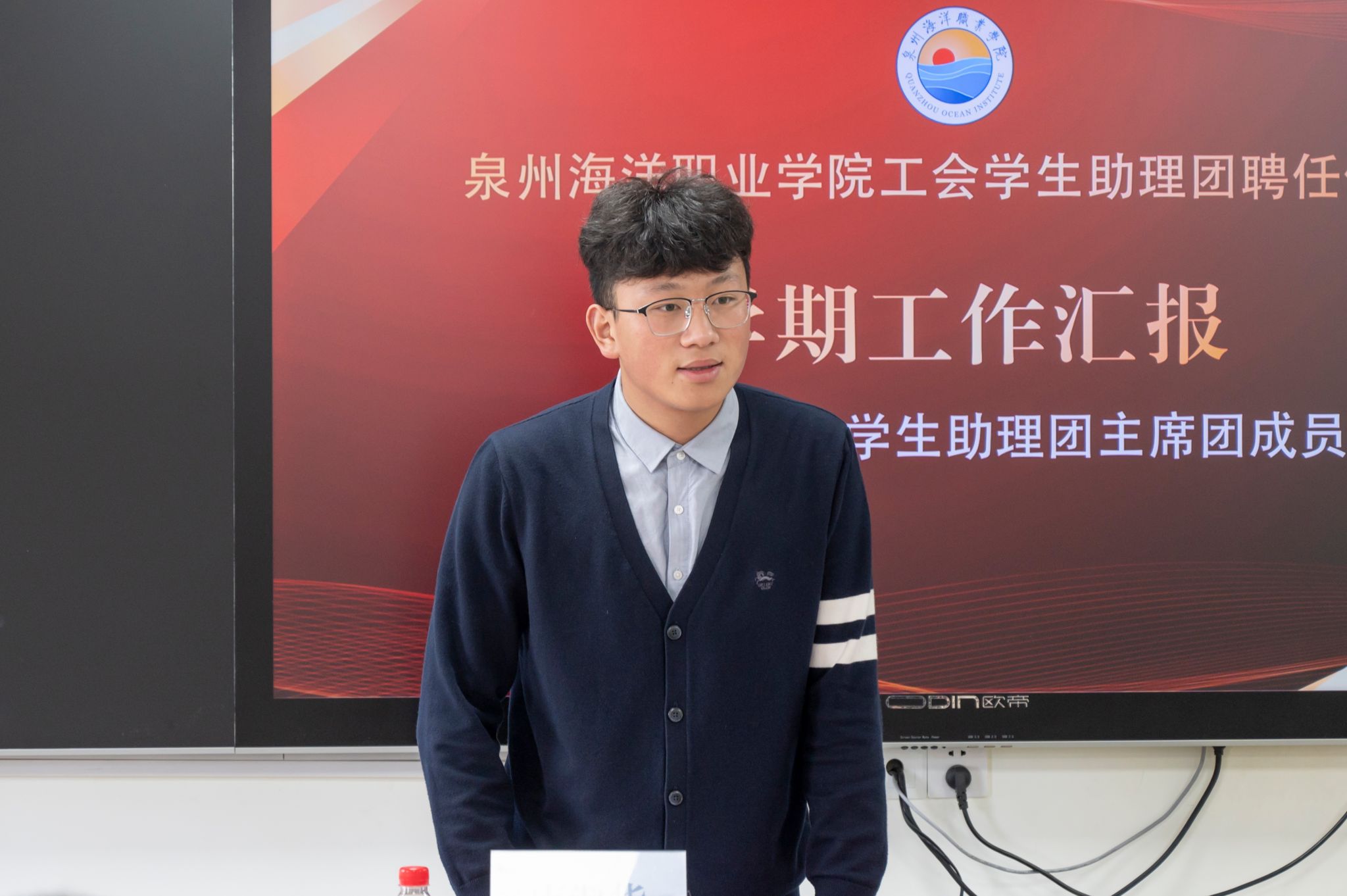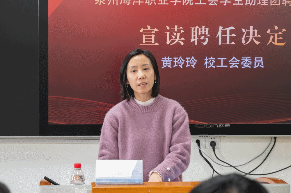 (新闻中心讯 校工会供稿 党委宣传部报道)12月24日下午,泉州海洋职业学院工会第二届学生助理团聘任仪式在智慧教室举行。校工会主席李明灿、副主席孙玉坤及全体工会委员共同出席。