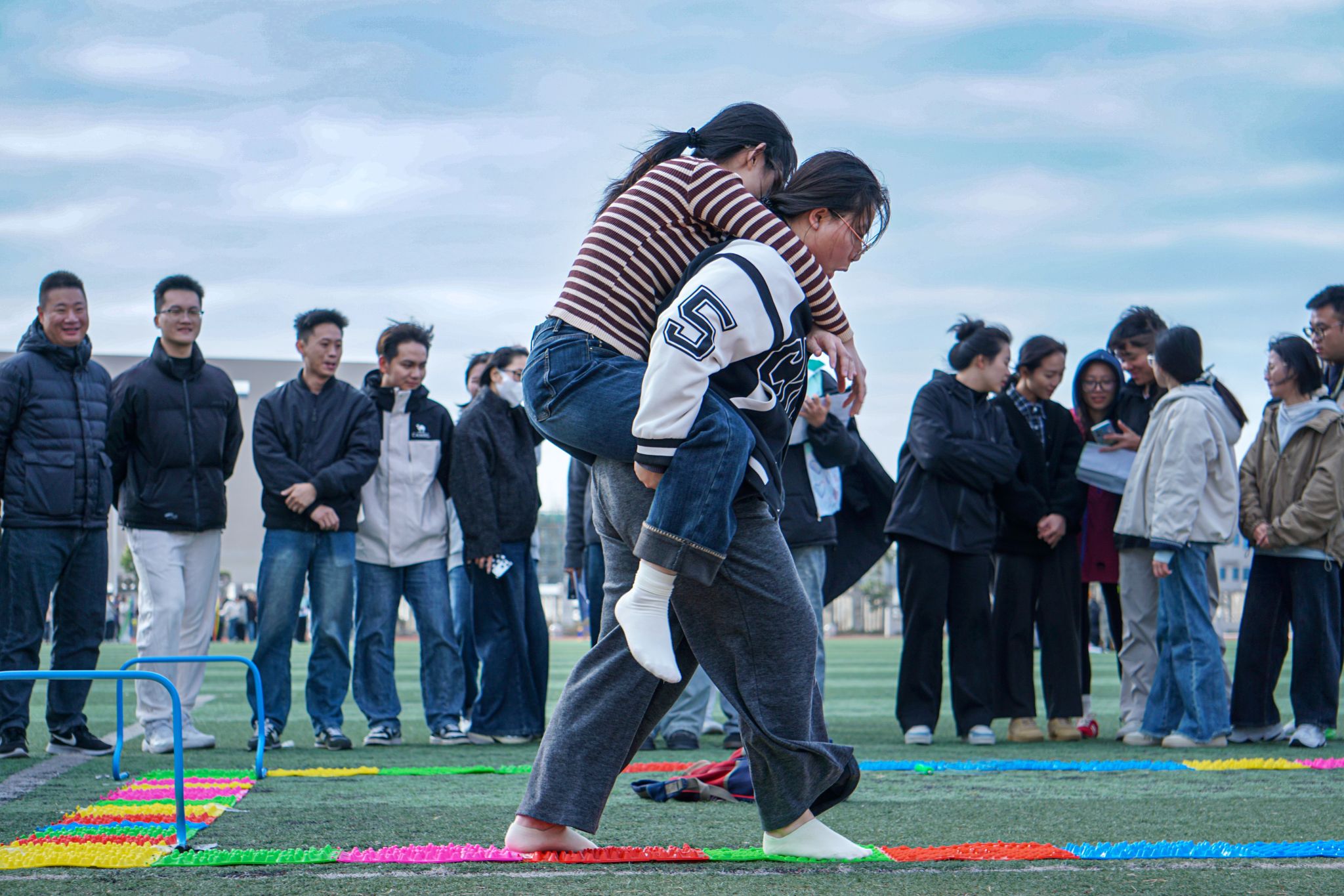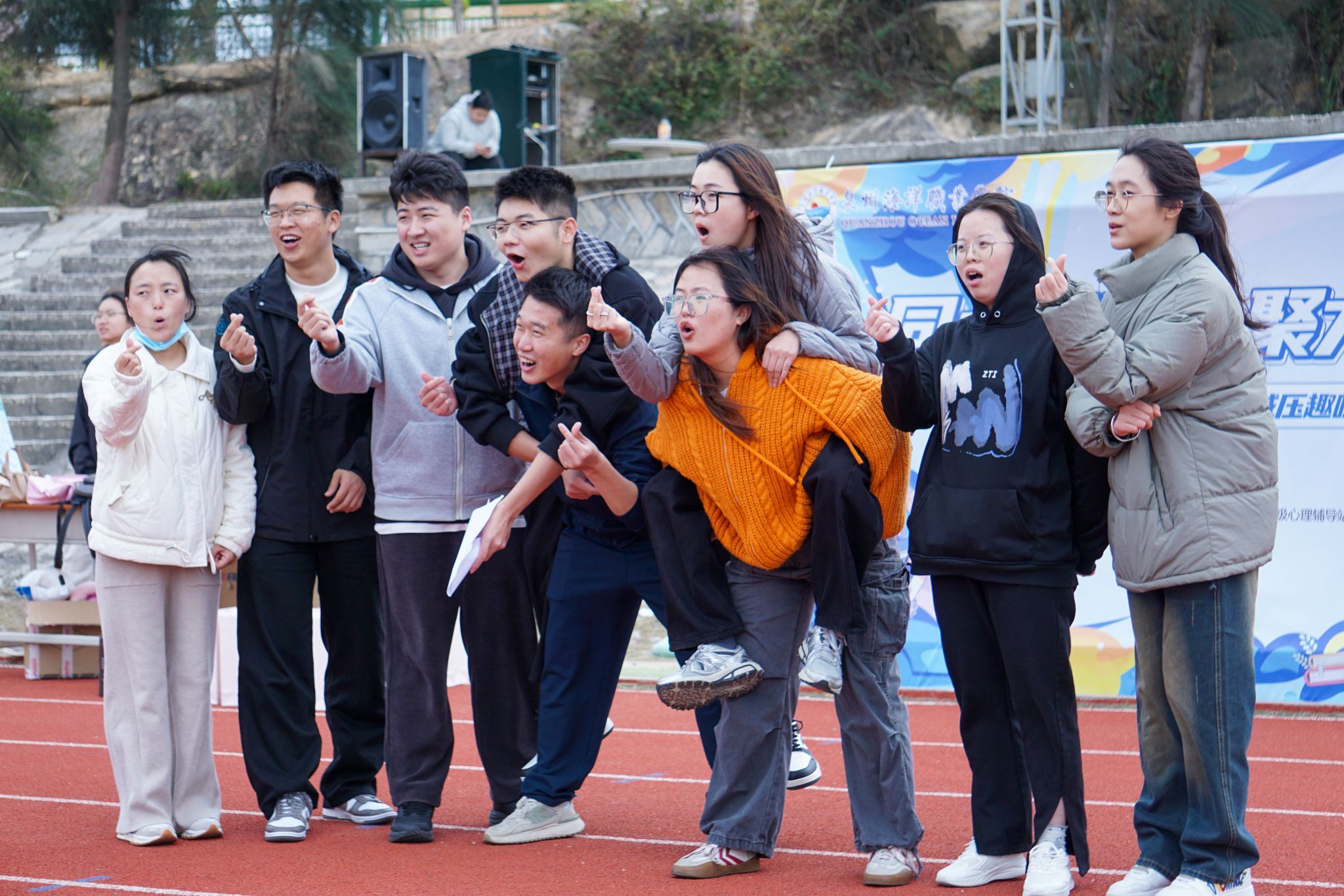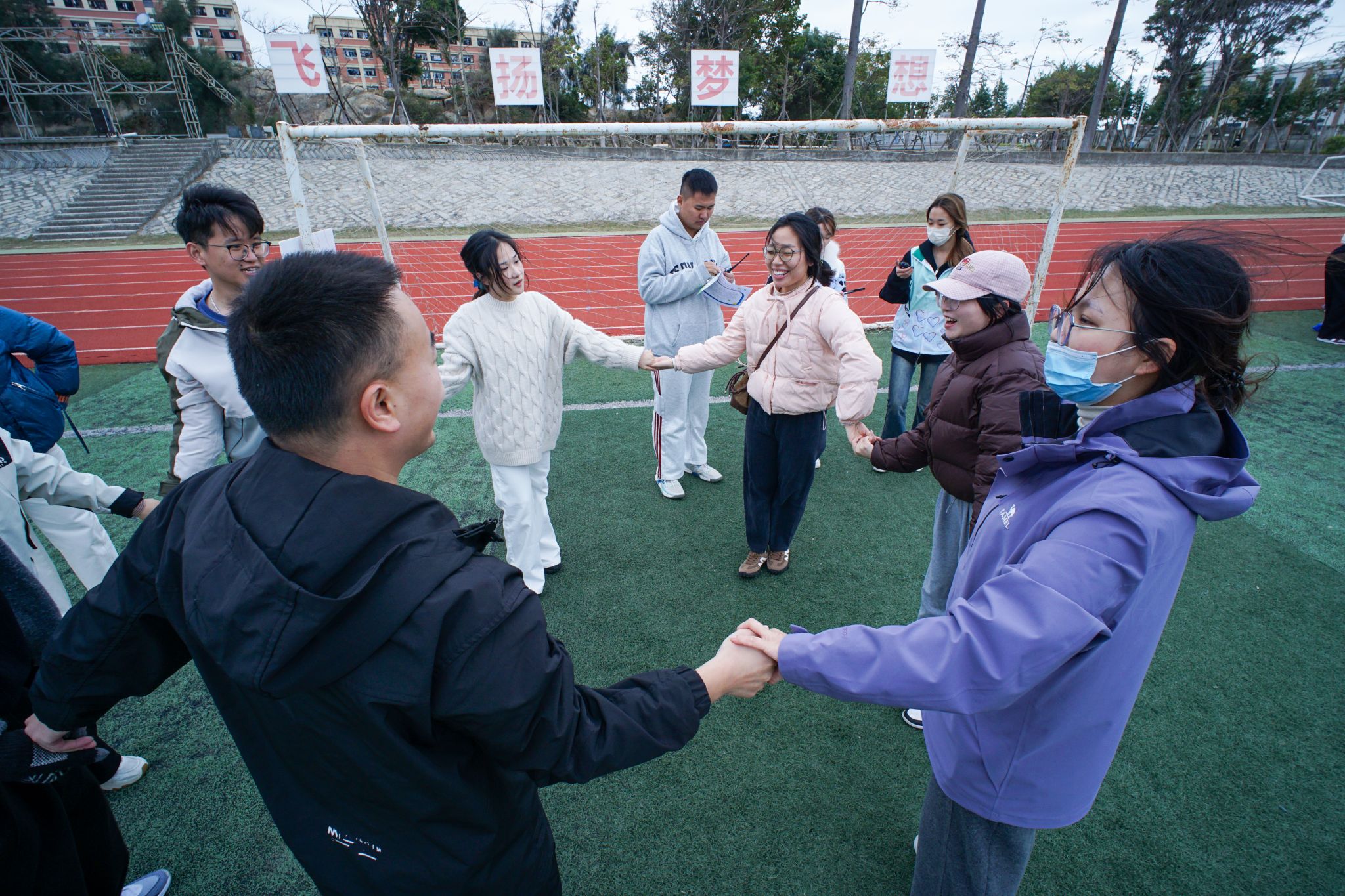 (新闻中心讯 党委学生工作部心理发展指导中心供稿 党委宣传部报道)12月22日下午,学校第一运动场变身活力减压站——由党委学生工作部心理发展指导中心组织的“同心减压·聚力前行”辅导员团体素质拓展活动在这里欢乐举办!学校全体辅导员热情投入,一起释放压力、畅快互动、凝聚共识,共同开启一段充满笑声与协作的午后时光。