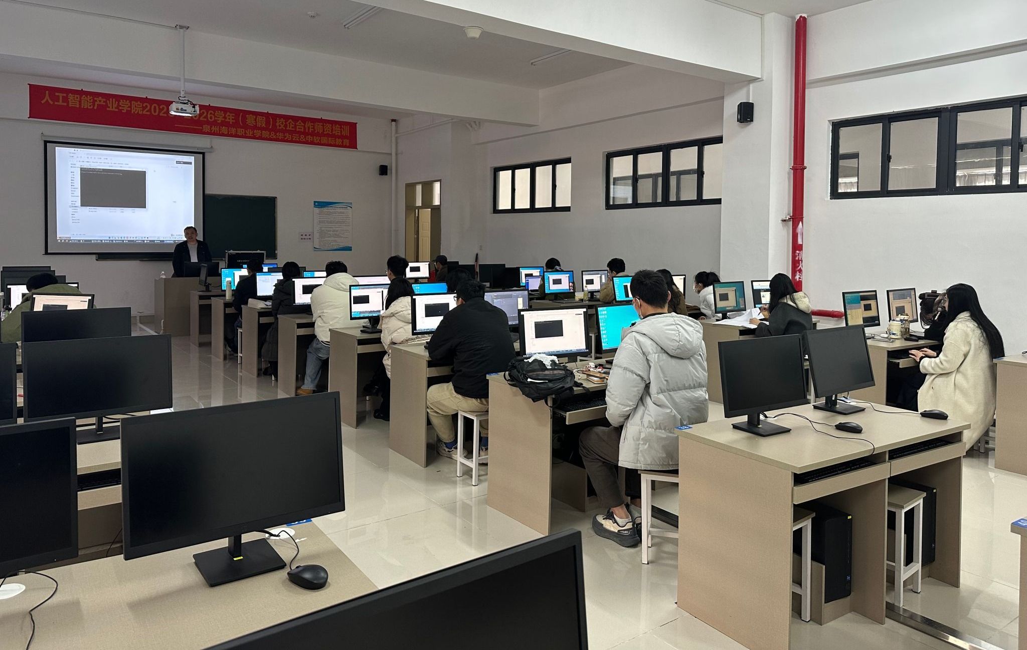 (新闻中心讯 信息工程学院供稿 党委宣传部报道)为深化产教融合,打造一支“懂产业、精技术、善教学”的高素质双师型教师队伍,近日,信息工程学院联合科大讯飞、华为、中软国际教育三家行业领军企业,举办为期两周的校企合作师资赋能专项培训。学校软件技术、大数据技术、移动互联应用技术、电子信息工程技术、计算机应用技术等专业的专任教师参与培训。
