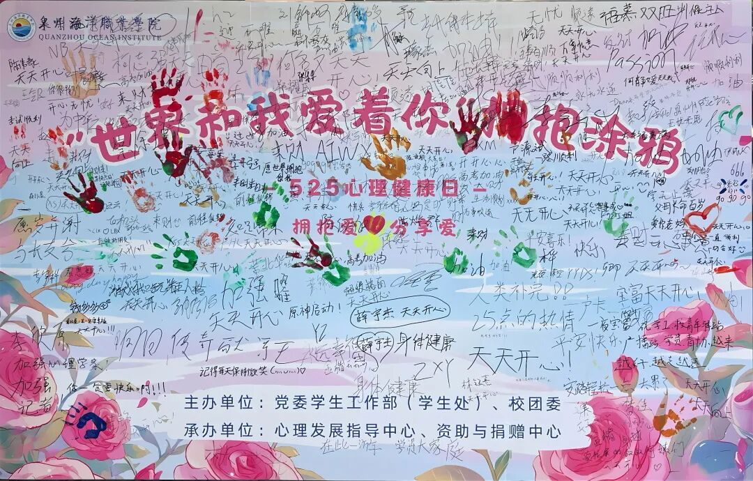 从每一次真诚的拥抱,到每一笔随心的涂鸦,都在传递着同一个温暖的讯息 —— 世界和我爱着你。感谢每一位参与活动的同学,是大家的热情与创意,让这个特别的心理日,成为了记录心灵成长、书写动人故事的美好时光。