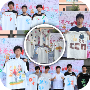 在活动现场,同学们沉浸于自由创作的氛围中。他们双手交替按压,将内心深处的情绪与故事,凝练成独特的 “情绪图谱”,印刻在衬衫之上。一个个手印相互交织,最终汇聚成一件件独一无二的 “友谊 T 恤”,这些作品不仅是创意的结晶,更承载着同学们彼此之间的深厚情谊与温暖共鸣。签名墙上,马克笔的痕迹纵横交错,或刚劲或飘逸。有人郑重写下 “要快乐”,传递着对自我与他人的期许;有人画上可爱笑脸,将喜悦定格于方寸之间;还有人悄悄留下对挚友的祝福,让无声的文字化作温暖的心意流淌。每一笔书写,都是内心声音的真诚吐露;每一印手印,都是温柔情感的有力传递。