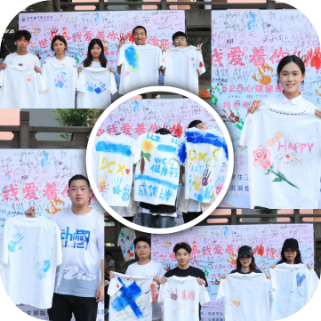 颜料与画笔在指尖流转,欢笑与拥抱在人群中蔓延。大家充分发挥天马行空的创意,将原本单调的纯白 T 恤,精心雕琢成承载情绪的艺术珍品。有人用绚丽色彩勾勒出彩虹,象征着对美好生活的向往;有人将手掌印满衣衫,寓意着自我的存在与力量;还有人把钟爱的歌词涂在衣角,让文字成为心灵的注脚。活动的魅力吸引着众多同学,即便未曾提前报名,许多路过的身影也纷纷驻足,主动加入这场心灵的狂欢。他们与工作人员一同挥洒创意,让整条校道摇身一变,成为充满艺术气息的露天画廊,处处洋溢着自由与表达的热烈氛围。