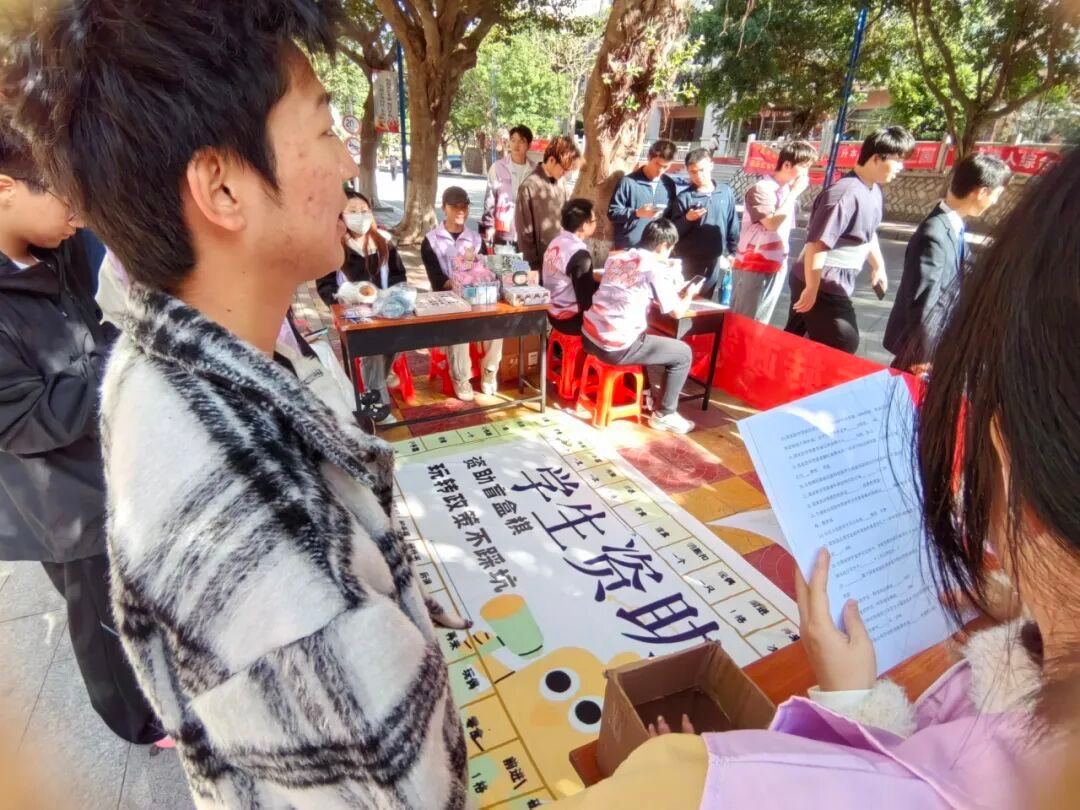 近日由学生资助志愿服务协会举办的“资助盲盒棋,玩转政策不踩坑”活动在学校东门校道顺利开展。