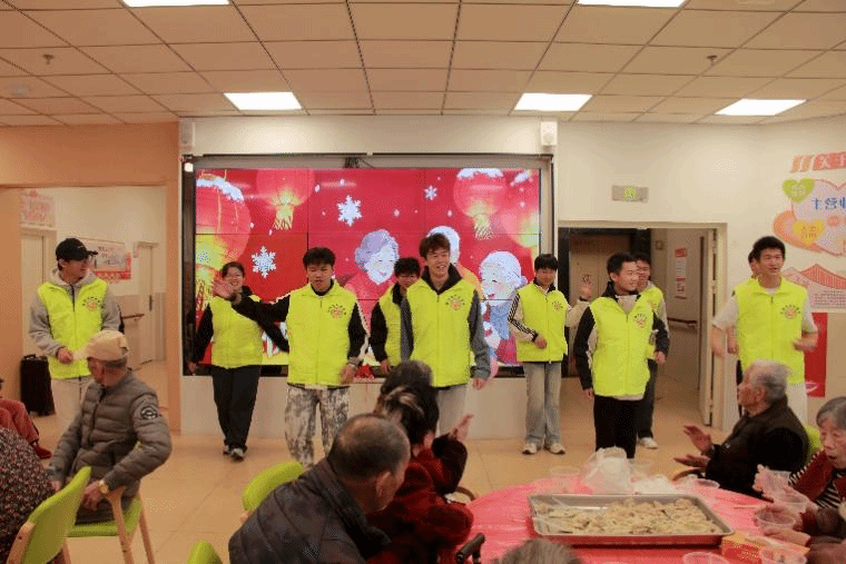 除了包饺子,志愿者们还精心准备了文艺表演。欢快的舞蹈点燃现场氛围,悦耳的歌声回荡在活动室里,老人们跟着节奏拍手哼唱,歌声与笑声交织,温暖的画面定格成冬日里最美的风景。