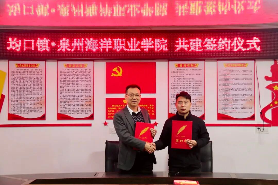 在与会嘉宾的共同见证下,校地领导为“泉州海洋职业学院均口镇官常村乡村振兴工作站”揭牌,标志着该工作站正式投入运行。