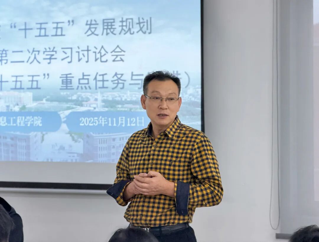 为深入贯彻落实学校“十五五”发展规划文件要求,精准锚定学校未来发展方向,信息工程学院于2025年11月14日在图书馆东侧503召开“十五五”发展规划第二次学习研讨会。泉州海洋职业学院副校长钱学东莅临指导,全院教职工参会,为学校高质量发展凝聚信息工程学院力量。