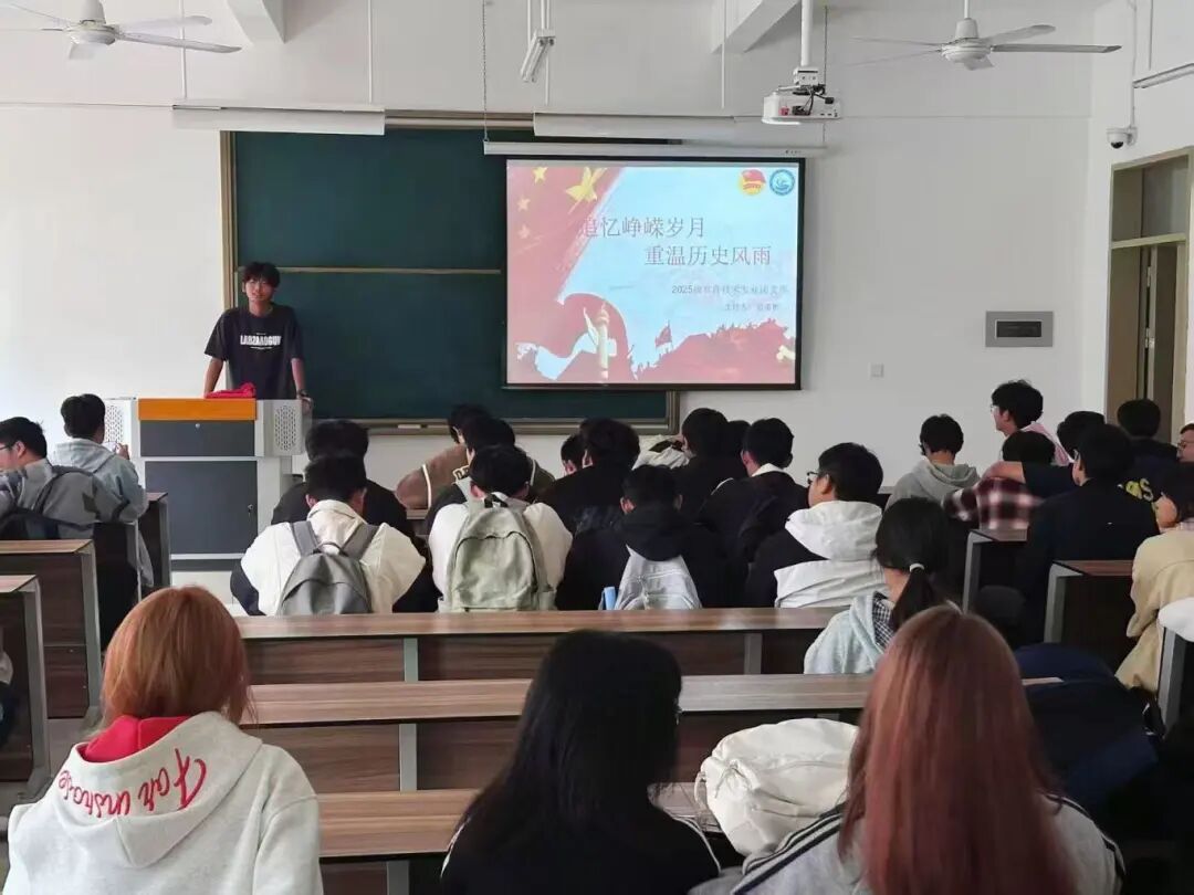 为强化青年学子的思想政治教育,弘扬爱国主义精神,增强团组织的凝聚力。2025年11月5日,信息工程学院2025级软件技术专业团支部于3号教学楼3201教室开展“追忆峥嵘岁月,重温历史风雨”主题团日活动。