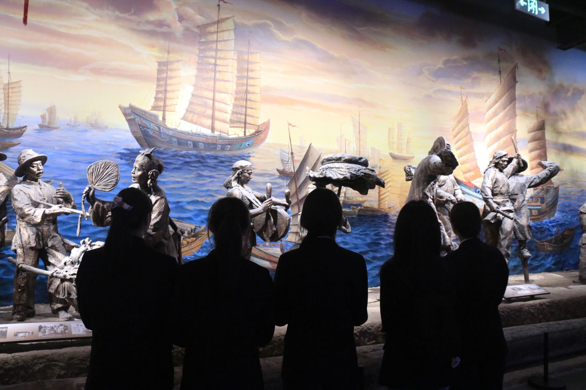 走进闽台缘博物馆,在讲解员的引导下,大家依次参观了“远古家园”“血脉相亲”“诸神同祀”“文脉相承”等核心展厅,通过千余件珍贵文物、历史照片和多媒体互动展项,系统了解闽台两地从远古时期到近现代的历史渊源、民俗风情与文化传承,深刻感受共通的民俗风情与绵延不绝的文化传承。