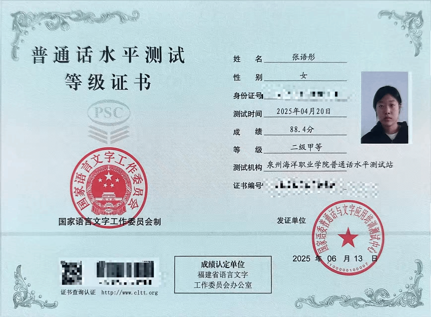 张语彤,女,共青团员,健康休闲学院护理2402班学生,现担任院心理辅导站学生站长。2024—2025学年专业成绩排名3/590,综合测评成绩排名3/590,曾获泉州海洋职业学院“优秀学生干部”、福建省高职高专院校“理论引航 强国有我”大学生理论知识竞赛一等奖、石狮市第七届校园心理情景剧大赛三等奖、泉州海洋职业学院第四届校园心理剧大赛决赛二等奖等荣誉奖项。持有普通话水平测试二甲等级证书、计算机一级等级证书。志愿服务时长422.33小时。