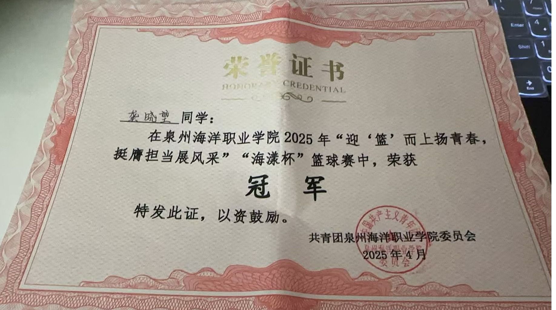 龚晓堃,男,共青团员,健康休闲学院社体212(五年制)班副班长、校篮球社社长。2024—2025学年专业成绩排名4/67,综合测评成绩排名1/67。曾获泉州海洋职业“三好学生”“学风建设个人”“最佳裁判”等荣誉称号。志愿服务时长114小时。