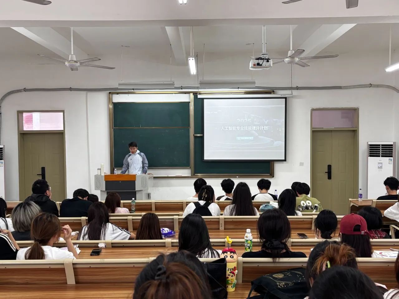 在人工智能通识教育方面,辅导员们围绕人工智能基础知识,特别是 DeepSeek 的介绍和使用进行讲解。详细阐述了 DeepSeek 在求职场景中的应用技巧,包括如何利用其优化简历,突出个人优势;如何借助它进行模拟面试,提前熟悉面试流程和提升应对能力;以及在数据、文字处理方面的高效应用技能,帮助学生提高工作效率。学生们认真聆听,不时记录重点内容。