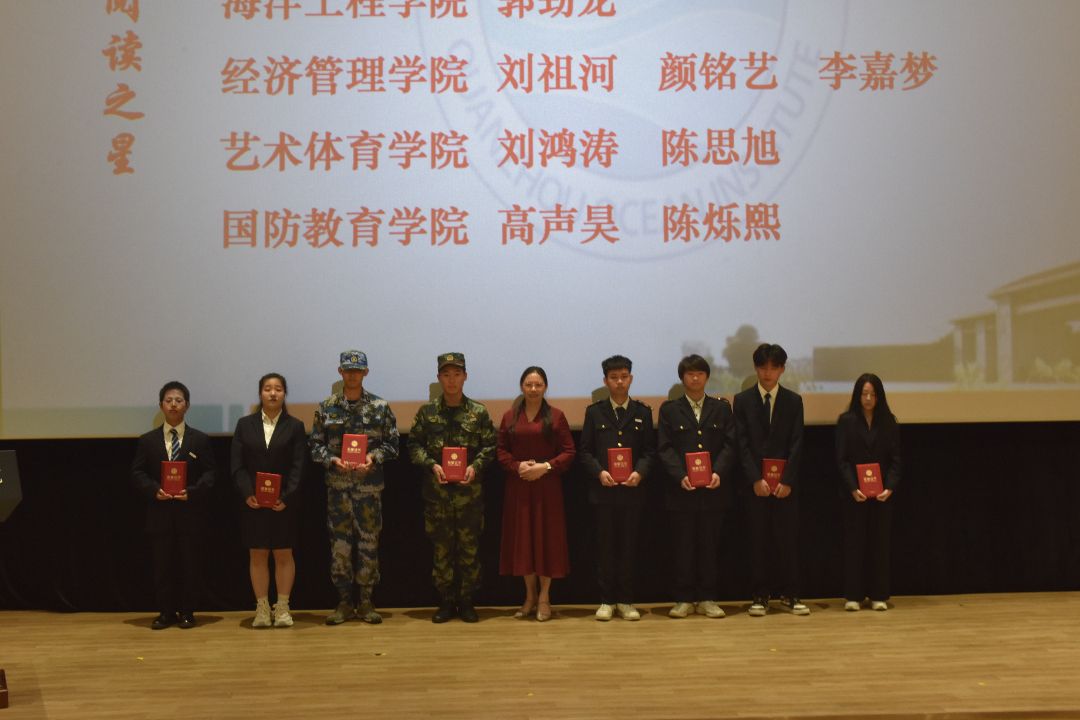 ▲李明灿副校长为泉海读书月“知识竞赛”获奖学院代表颁奖