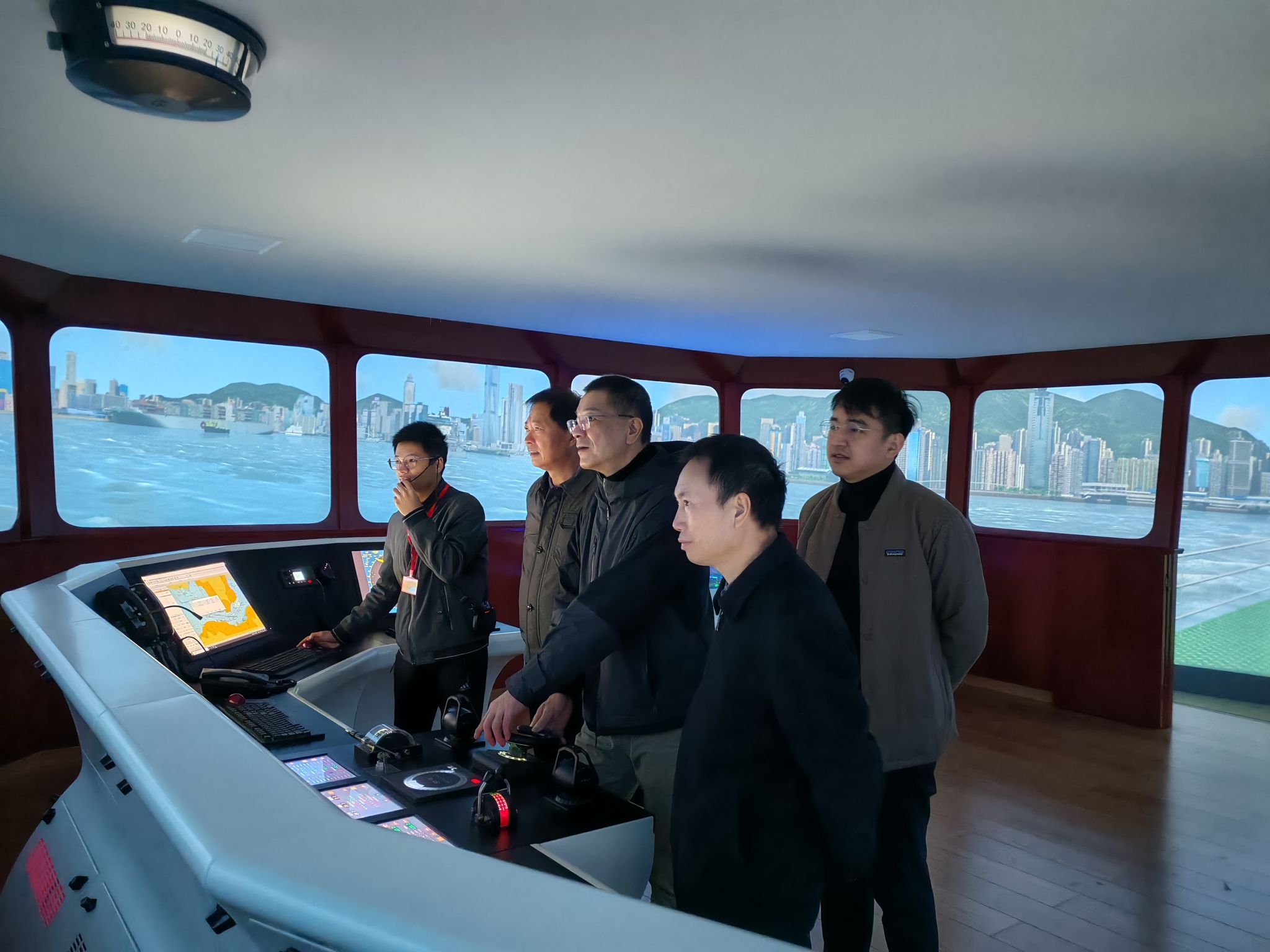 李俊玮一行参观了船员培训综合楼、学校世界特种船舶展示厅、VLCC轮机实训中心、科大讯飞同声传译智慧教室、海权红馆、360°全视景航海船舶操纵模拟器、退役军人之家、国防科技馆等学校特色场馆,围绕船员培训、课程思政、AI课程研究、实训设备、实训课程安排、退役军人政策宣传等方面深入了解办学特色和人才培养特点。同时,李处长一行深入三创基地和继续教育学院,实地考察“中经海农”电商平台、普通话水平测试站等场所,就如何提高学生就业竞争力进行深入探讨,体现了对青年学子成长成才的高度重视。调研过程中,李处长对学校近年来取得的发展成果表示了高度认可,并针对学生就业与创业工作中的问题与挑战,提出了具有针对性的建议。