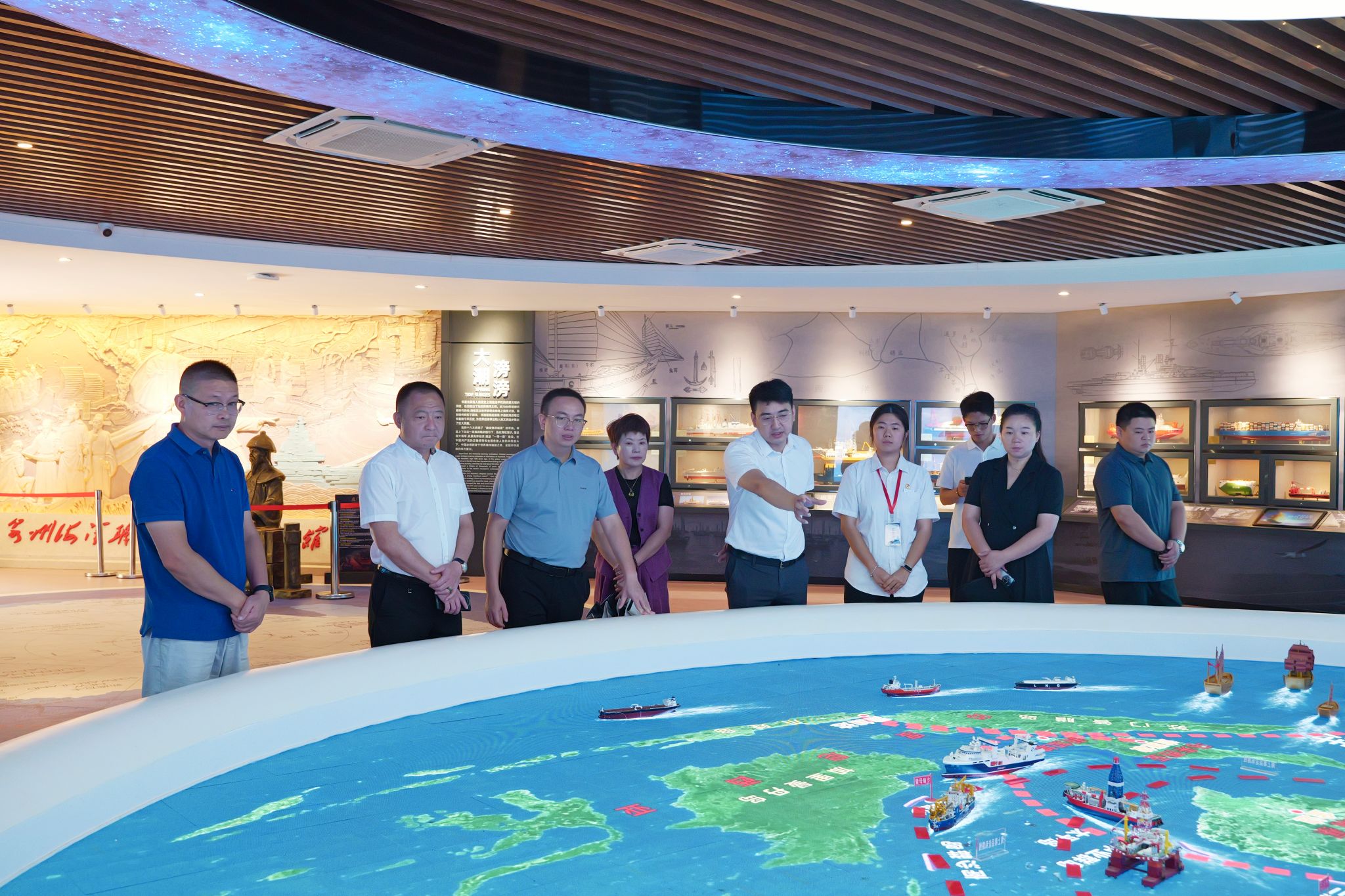 调研组一行先后实地走访了海权红馆、三创学院就业创业服务站及中经海农校办企业,现场观摩了360°全视景船舶操纵模拟器的运行演示,深入了解我校在船员教育培训、海洋文化育人、学生就业创业服务等方面的创新举措与扎实成果。调研组对学校立足海洋特色、深耕产教融合的办学实践给予了充分肯定。