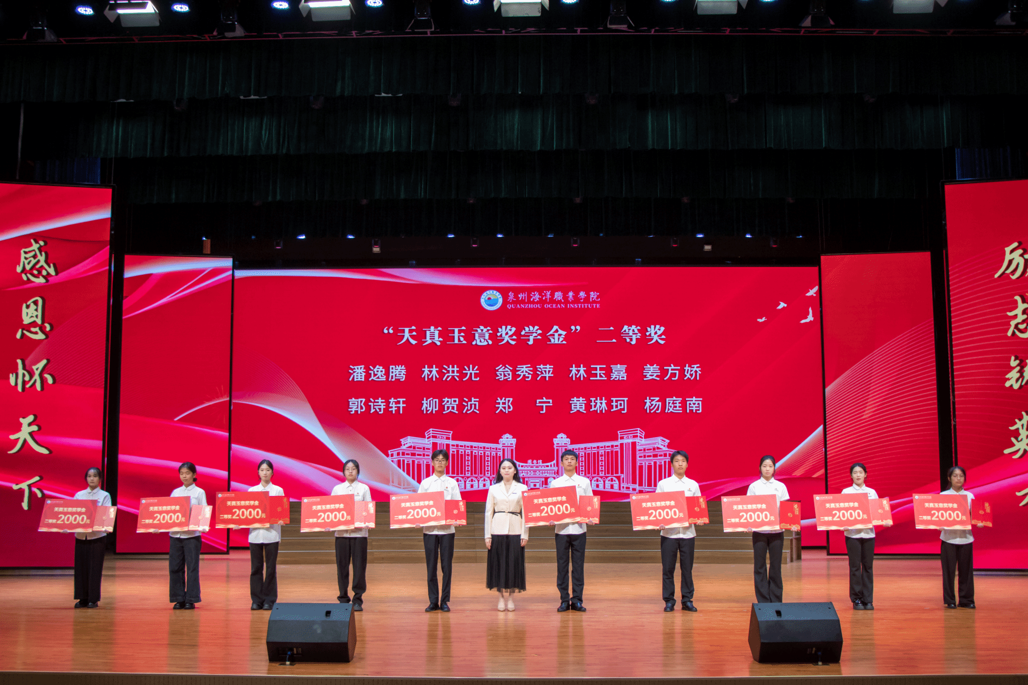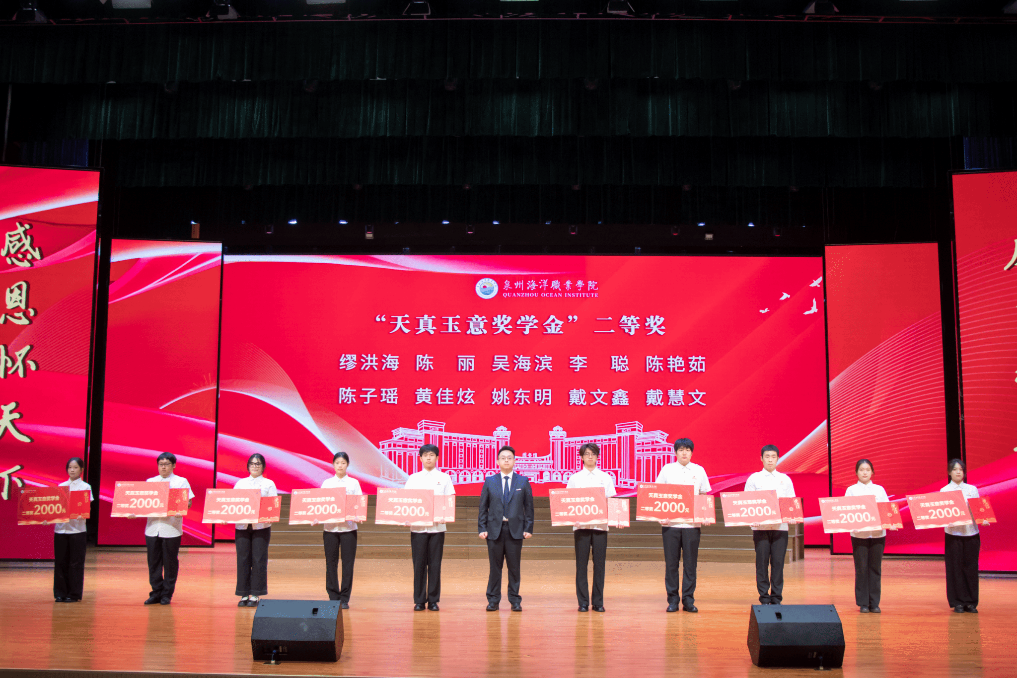 仪式现场,校党委副书记、副校长李明灿宣读了表彰文件。本次共颁发“天真玉意奖学金”一等奖20名、二等奖30名、三等奖50名。获奖学生分批上台领取荣誉证书,现场掌声不断。
