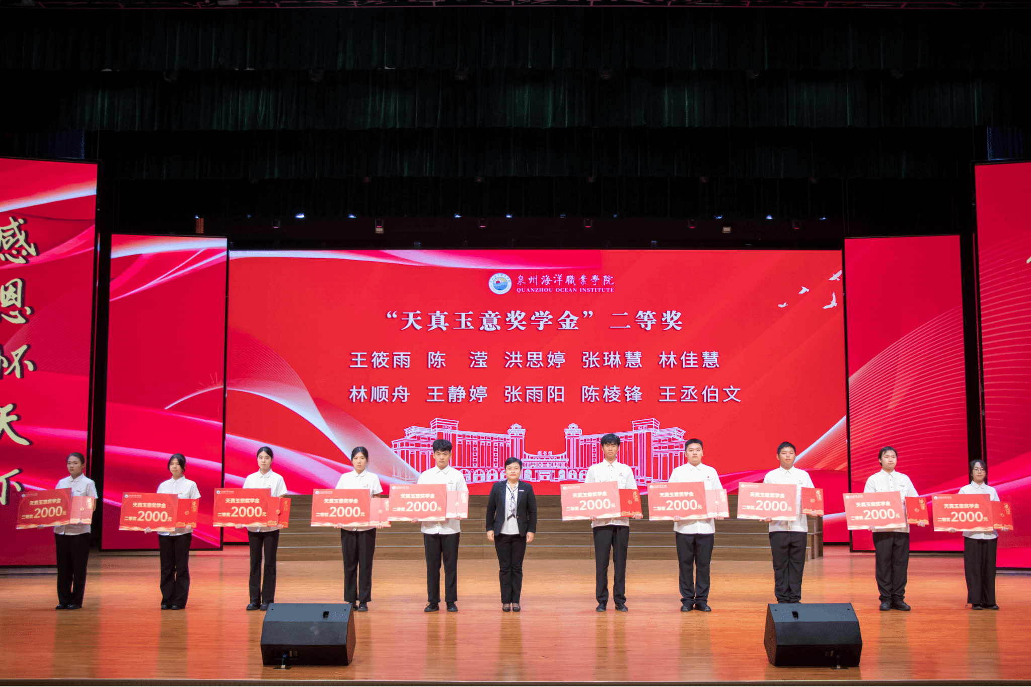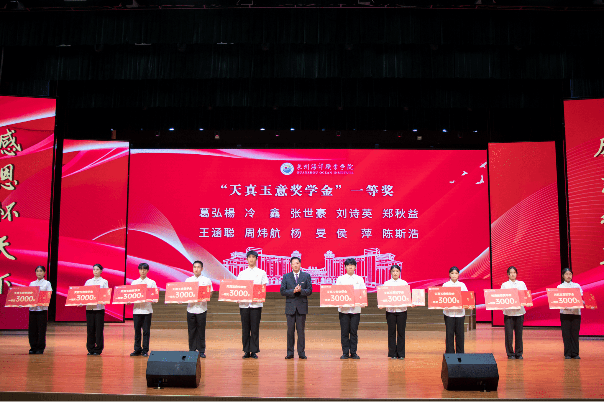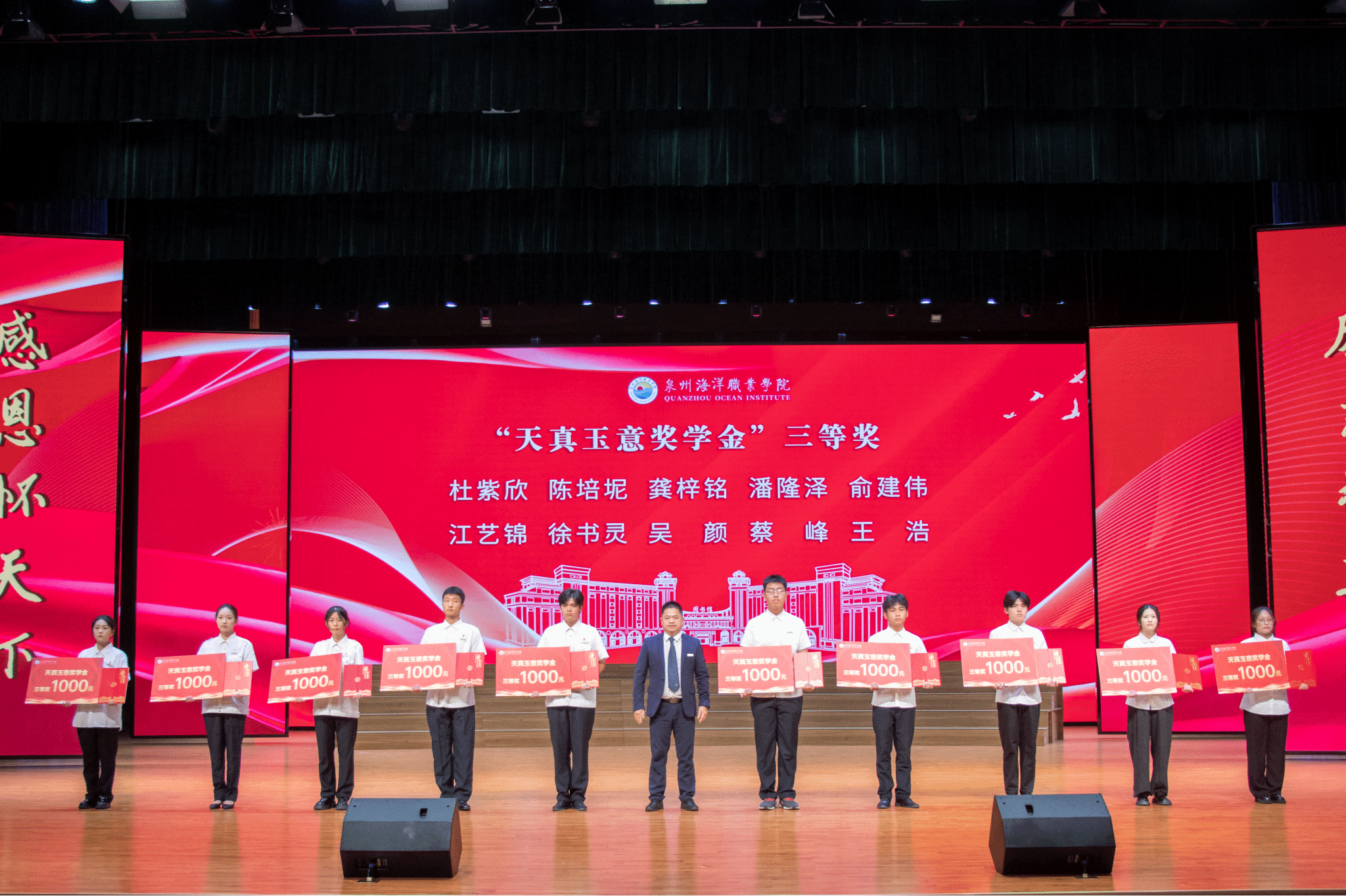 慈心励学,榜样育人。本次活动通过表彰优秀学子、展示育人成果,生动呈现了学校在立德树人道路上的积极探索与扎实成效。而“天真玉意奖学金”的设立,更凝聚着蔡天真先生、蔡玉意女士对教育事业的深厚情谊与殷切期望。这份承载着家族深厚教育情怀的捐赠,其背后是蔡天真先生数十年来对海洋事业与家乡教育的深切关怀。他早年投身石油能源与海洋产业,33岁即登上首届“福布斯”中国富豪榜。深耕海洋领域的经历,使他深刻认识到人才对于建设海洋强国的重要性。2005年,他毅然返乡创办泉州海洋职业学院,将“以教报国、以海强国”的理想付诸实践。办学二十年来,学校在航海技术、轮机工程技术等专业领域形成鲜明优势,船员培训规模长期位居全国前列,毕业生足迹遍布全球,为国家持续输送着高素质技术技能人才。
