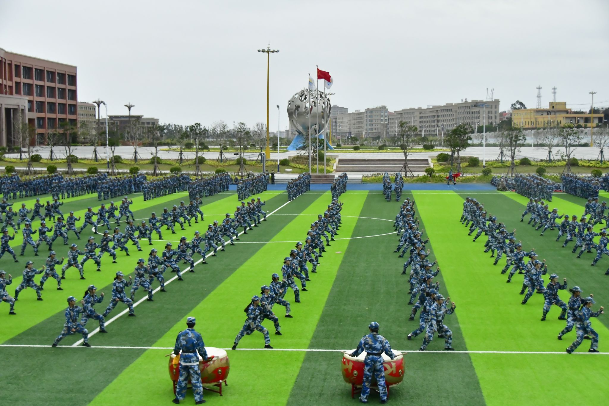 同学们动作刚劲有力,战术配合默契,特别是数字方阵和旗语方阵,以整齐划一的举牌和默契十足的挥旗传递着“向海图强,强国有我”的青春誓言,充分体现了学校“立足海洋,服务地方”的办学特色,展现了学子们未来投身海洋事业的决心与潜力。