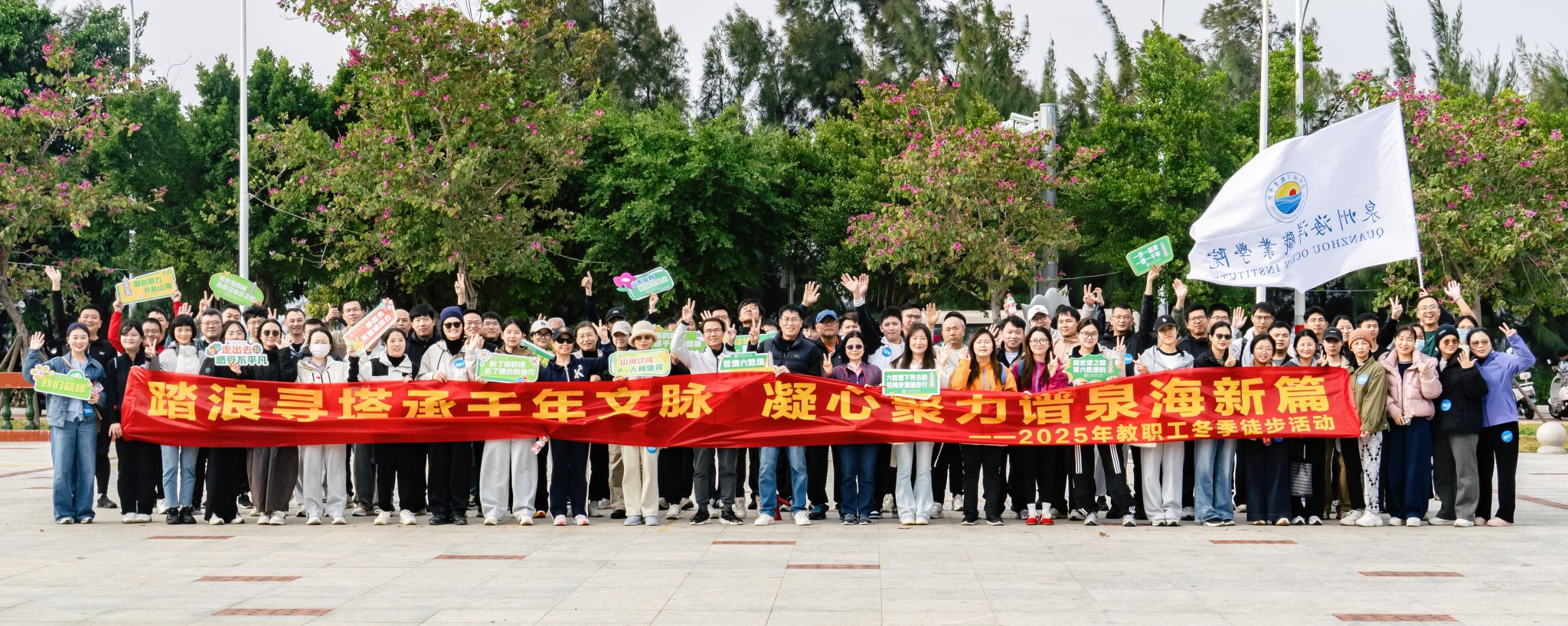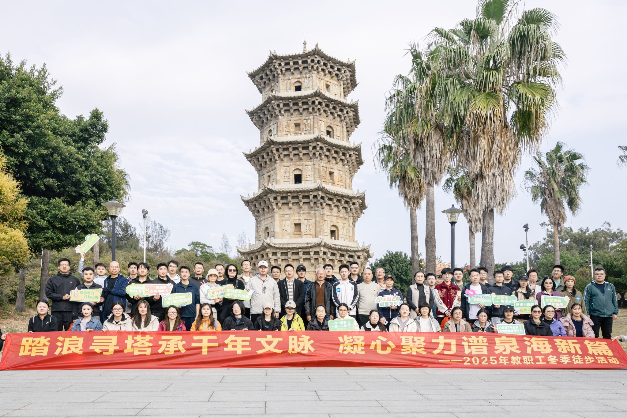 (新闻中心讯 校工会供稿 党委宣传部报道)为丰富教职工文化生活,增强团队凝聚力,引导教职工在行走中亲近自然、感悟历史,12月12日下午,校工会组织开展“踏浪寻塔承千年文脉 凝心聚力谱泉海新篇”教职工冬季徒步六胜塔活动。近百名教职工热情参与,共同开启一场集健康行走、文化体验与团队协作为一体的活力之旅。