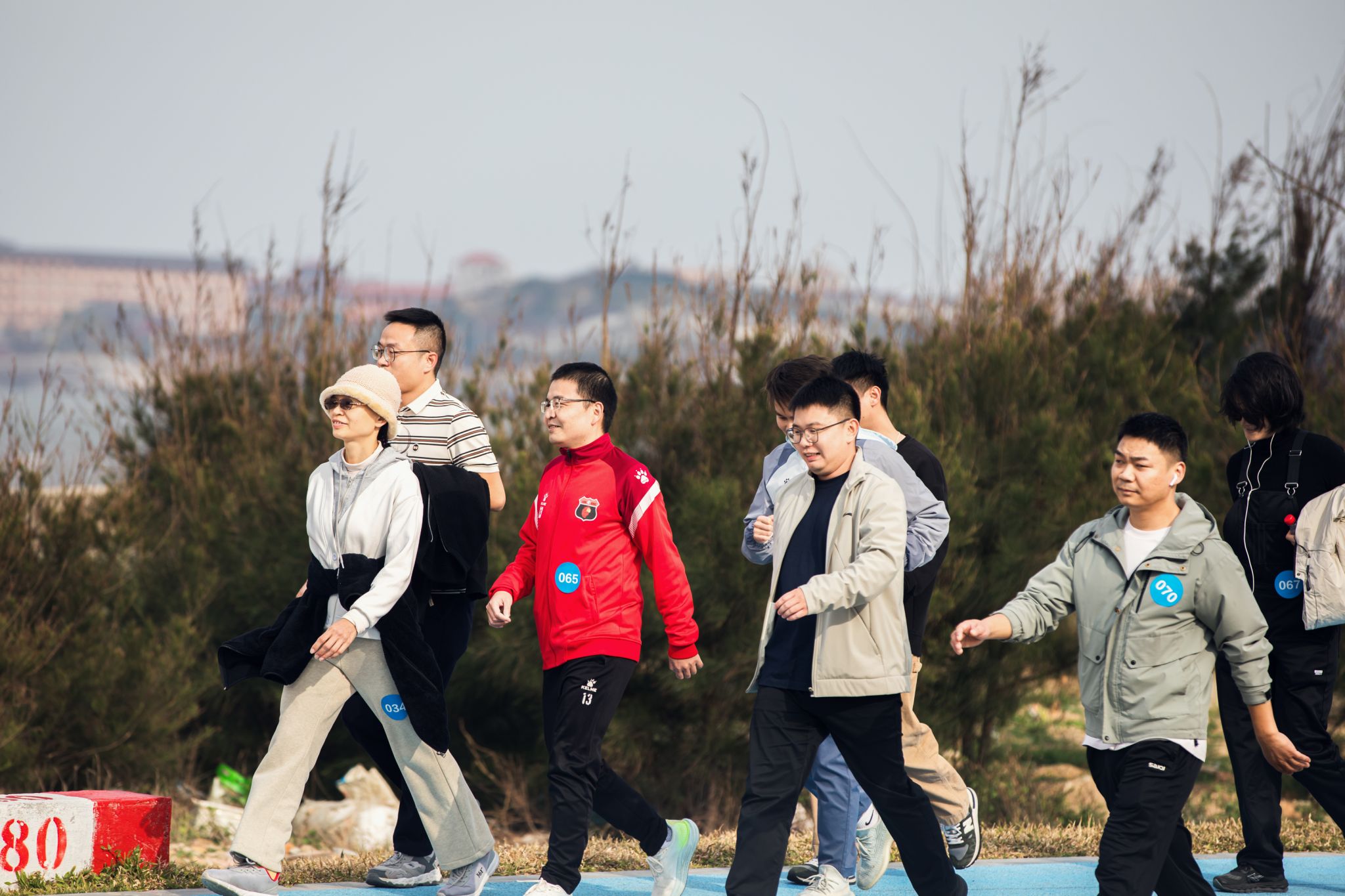 活动伊始,校工会主席、副主席分别作动员讲话,阐述了活动意义,强调了安全事项,并鼓励大家在徒步过程中互帮互助、携手同行。随后,队伍沿海岸线向六胜塔进发。校工会学生助理团全程协助,承担路线引导、安全保障、补给发放及终点奖品分发等工作,为活动顺利开展提供了有力支持。